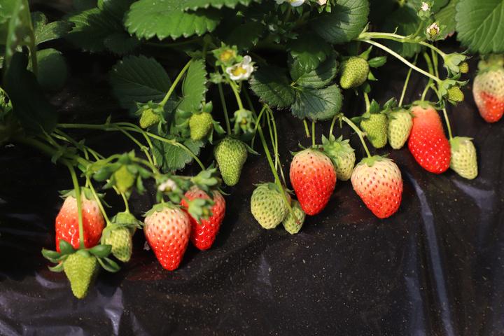 当下,棚内西红柿与草莓已陆续成熟上市,红彤彤的西红柿饱满多汁,鲜红的草莓香气扑鼻,吸引了不少群众前来采摘。黄瓜、水萝卜、辣椒等作物长势喜人,预计在春节前后可全面上市。