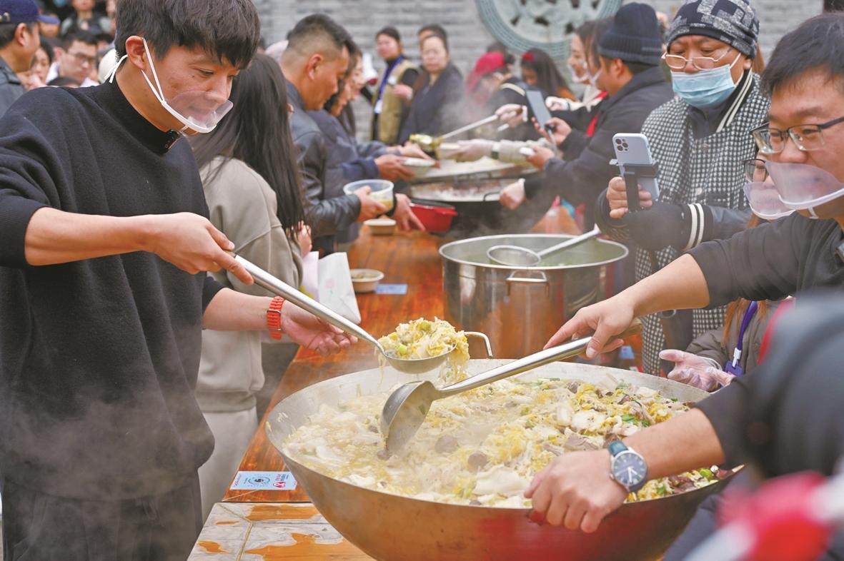 市民自带碗筷赴宴。