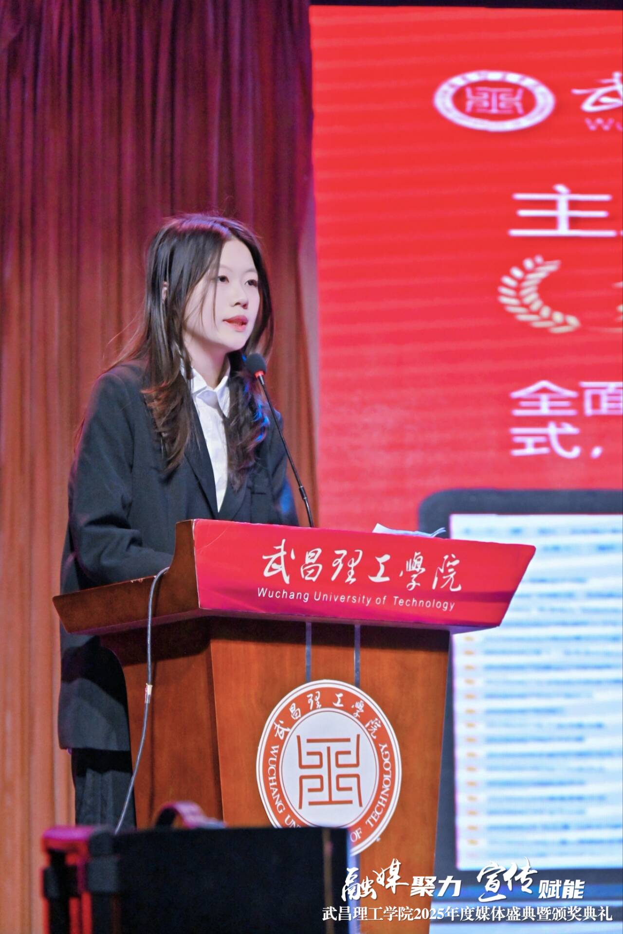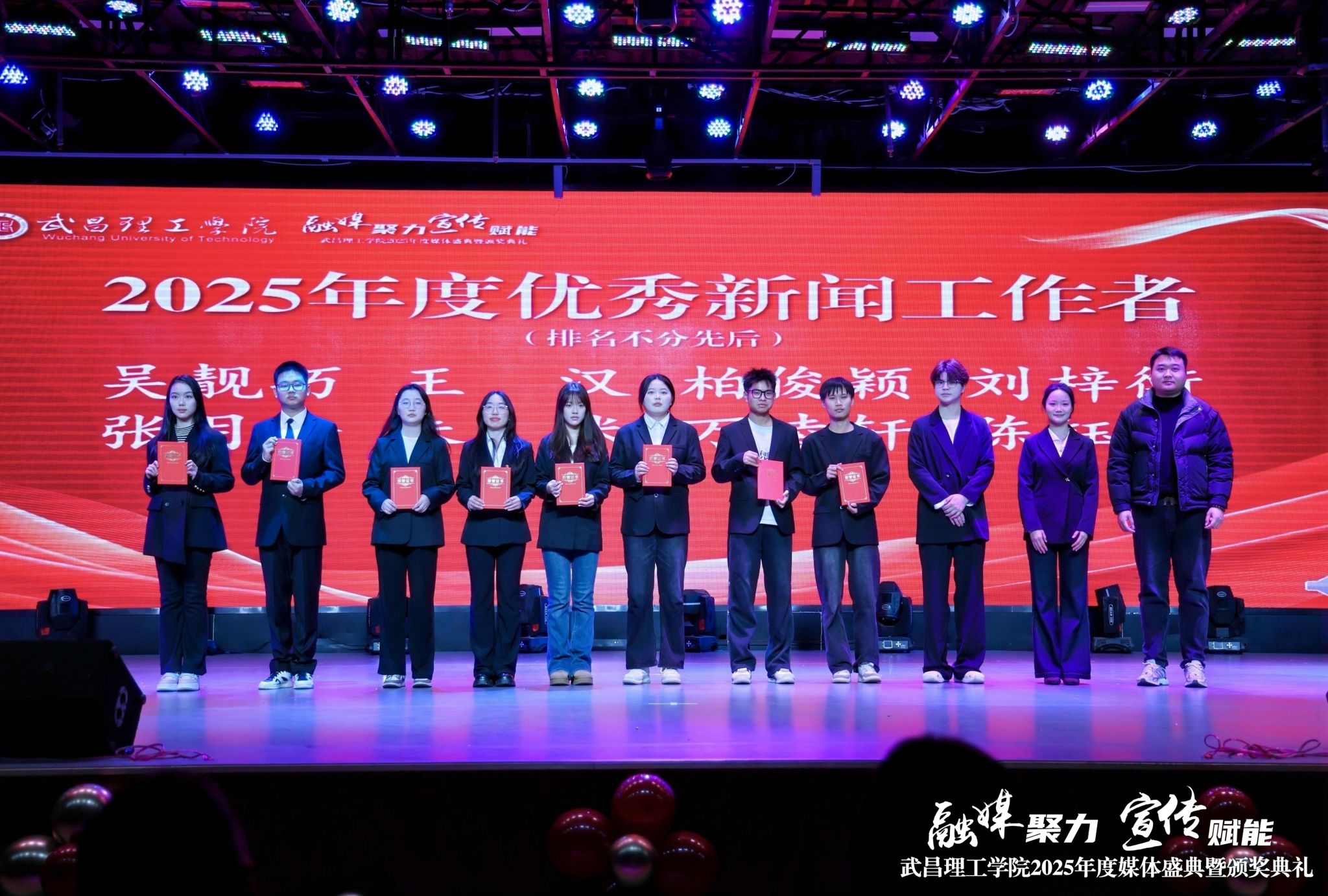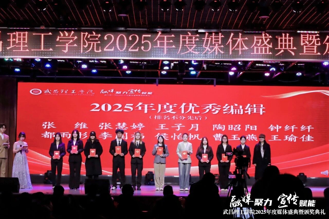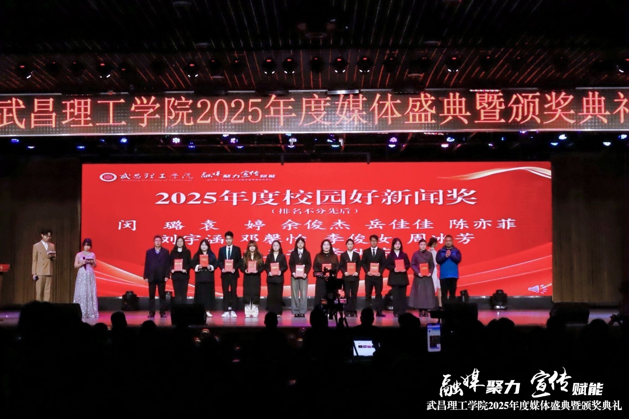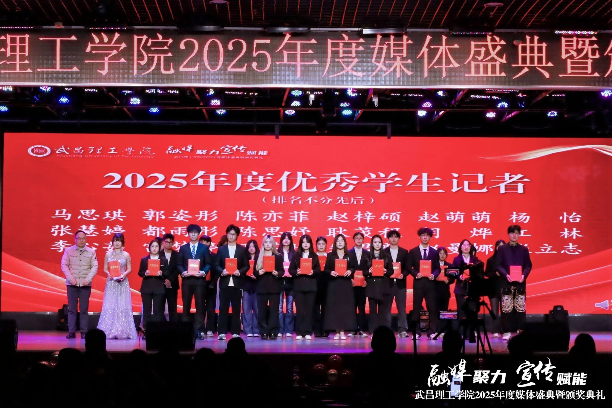 1月5日,武昌理工学院2025年度媒体盛典暨校园好新闻、优秀学生记者、优秀网络评论员、优秀教职工通讯员颁奖典礼在梅南剧场隆重举行。校党委书记高建勋教授,校党委副书记、副校长林娟教授,校长助理、学工部长李金永副教授,校党委宣传部刘明杨部长,校团委杨瑞书记,宣传部、校团委相关指导老师、媒体代表,以及全校700余名学生记者齐聚一堂,共同见证校园媒体人的荣耀时刻。
