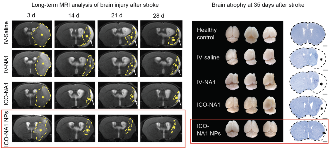 长期观察显示,该策略不仅能改善急性期损伤,还能在28天内持续减轻脑萎缩、保护脑结构,提高动物存活率,并改善学习、记忆和运动能力。