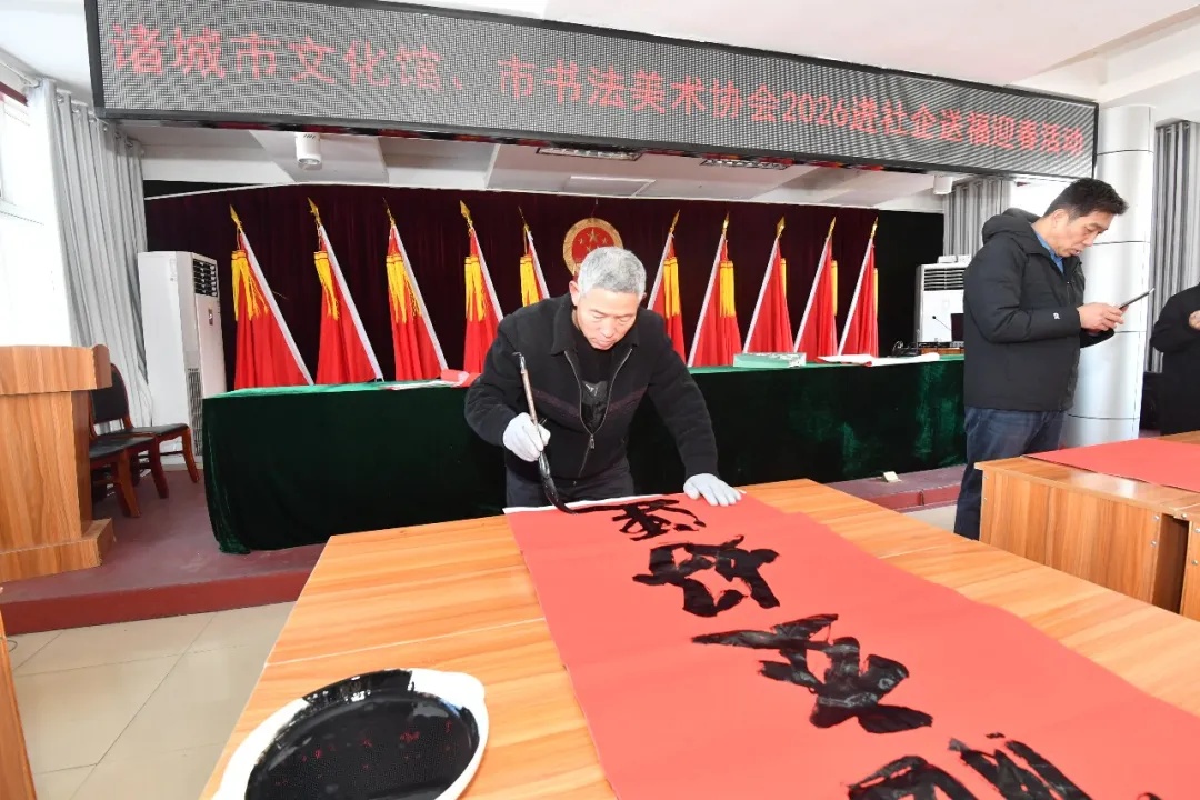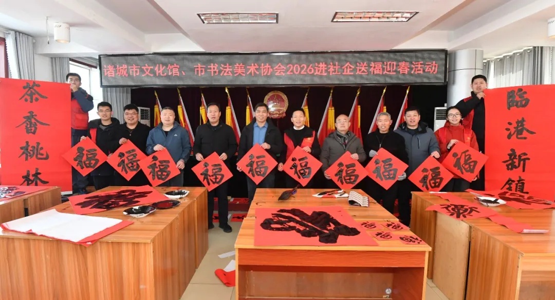 1月21日上午,寒意未消的诸城桃林镇办公楼内暖意融融,2026“龙马精神”送福迎春文化惠民活动在此温馨启幕。作为中国地理标志产品诸城绿茶的核心产区,这片浸润着数万亩茶园清香的土地,迎来了由潍坊诸城市委宣传部、潍坊诸城市文旅局牵头,潍坊诸城市文化馆与市书法美术协会联合组织的7位知名书画家,他们以笔墨为桥,为山乡群众送上兼具文化厚度与新年暖意的特殊礼物。