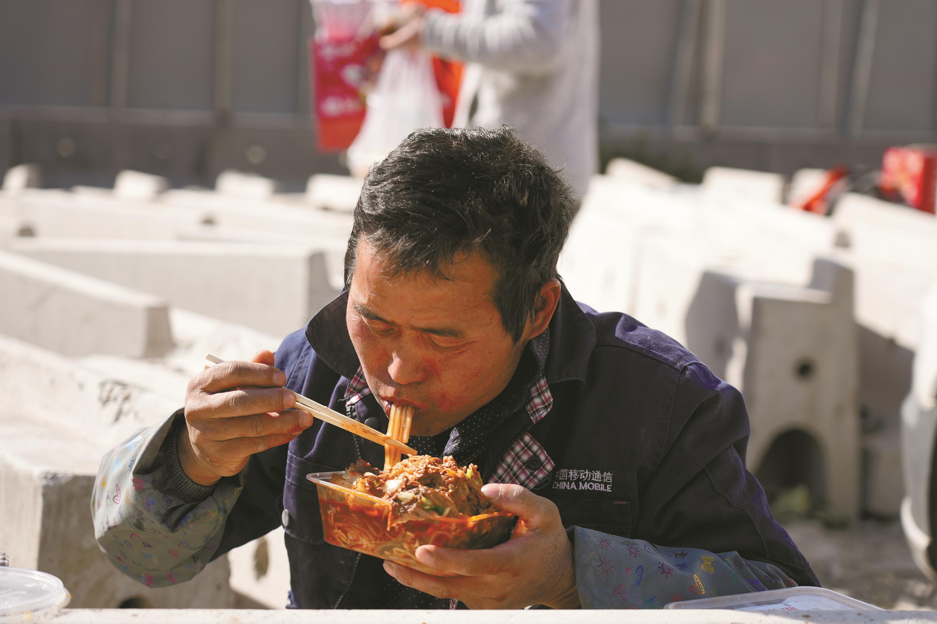 10元一份的卤肉饭,肉堆得像小山;8元一份的大烩菜,热气蒸腾。这处普通工地上的盒饭摊,因为短视频的传播而火爆全网。“你搞的那个菜,为什么搞得那么好吃啊,跟我们那里的差不多。”被网友称为“贵州子涵”的建筑工人曾信金一句带着乡音的夸赞,更是让无数网友会心一笑。