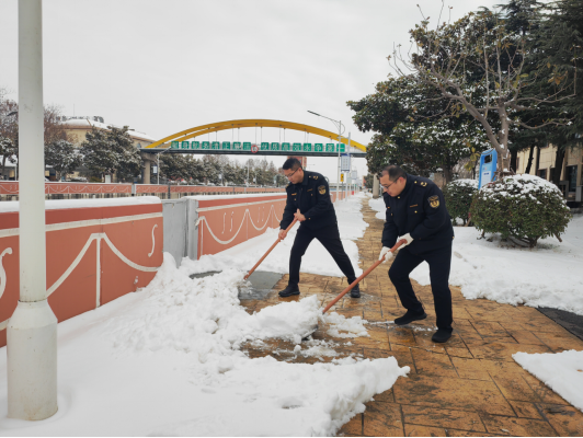 靠前指挥,除雪保畅“零积雪、零结冰”。宿迁船闸管理所领导带队分组赴闸区运行现场、办公楼、航政艇停泊点等重点区域,及时抛洒融雪剂,合力开展除雪工作,同时铺设防滑垫,确保通行道路及设备设施无积雪、无结冰。