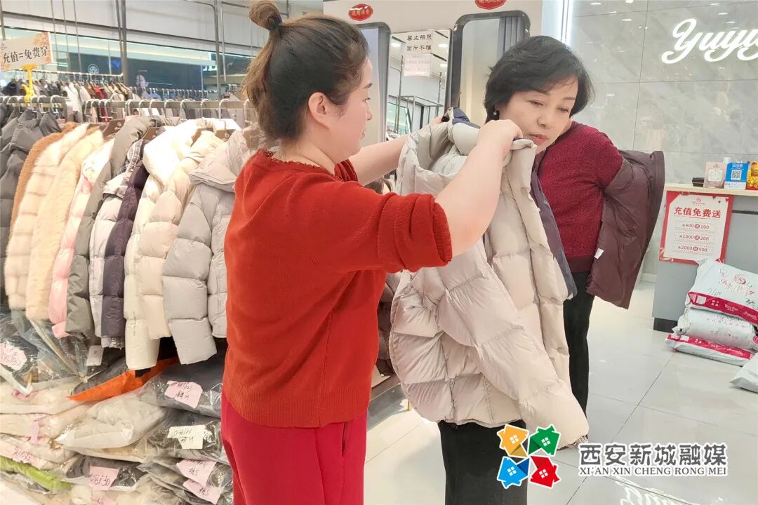 “我们在商场有6家门店,目前主打的品类是羽绒服,每个店的备货量都超过千件,款式更是多达200个,春装也在陆续上新,保证市民有充足的选择空间。”西北商贸中心“回味依衣”品牌负责人王女士一边整理货架上的服装,一边介绍。为了应对春节消费高峰,“回味依衣”早已做好了人员调配,在服务上也做了升级。优惠活动方面,更是拿出了十足的诚意。王女士表示,针对春节消费需求,品牌特意设定了分层优惠策略,推出清仓特价销售、满减活动和线上团购优惠券。“从目前的销售情况来看,市民的消费热情很高,我对今年的春节消费市场非常有信心,这也离不开西北商贸中心完善的配套服务和浓厚的节日氛围。”