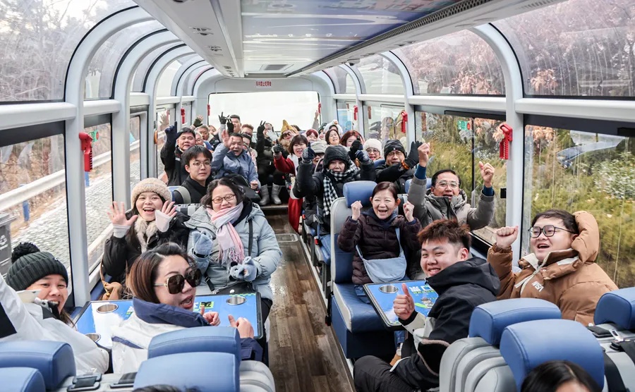 马来西亚旅行商乘坐千里山海全景观光巴士穿梭海岸线。 本报记者 孙大伟 摄