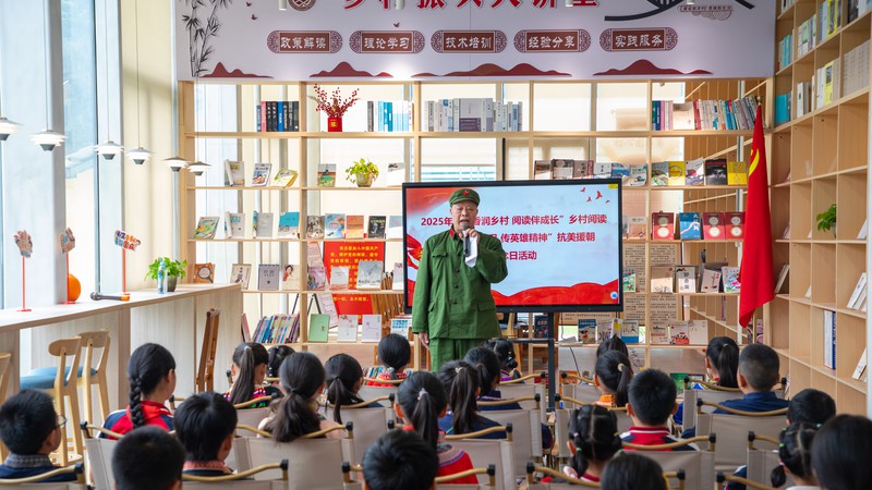 红色教育是书屋年度活动的重头戏。抗美援朝出国作战75周年之际,书屋举办了“书香润乡村 阅读伴成长”红色主题活动,在活动中,老兵佩戴荣誉奖章,深情讲述烽火岁月,学生们则通过深情朗诵《我的战友邱少云》《少年中国说》等经典篇目,表达对英雄的敬意。知识竞答环节更是点燃了现场的学习热情,让红色种子在互动中深植青少年的心田。活动还特别捐赠了红色经典、儿童文学等图书,为乡村学子补充了宝贵的精神食粮。