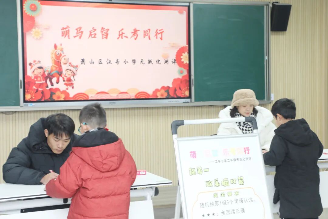 近日,萧山区江寺小学以“萌马启智,乐考同行”为主题的一二年级无纸化测评活动欢乐开启。本次活动以生肖马年为切入点,创新采用趣味闯关形式,将各学科知识点与游戏体验深度融合,让孩子们在轻松愉悦的氛围中检验学习成果、收获成长喜悦。