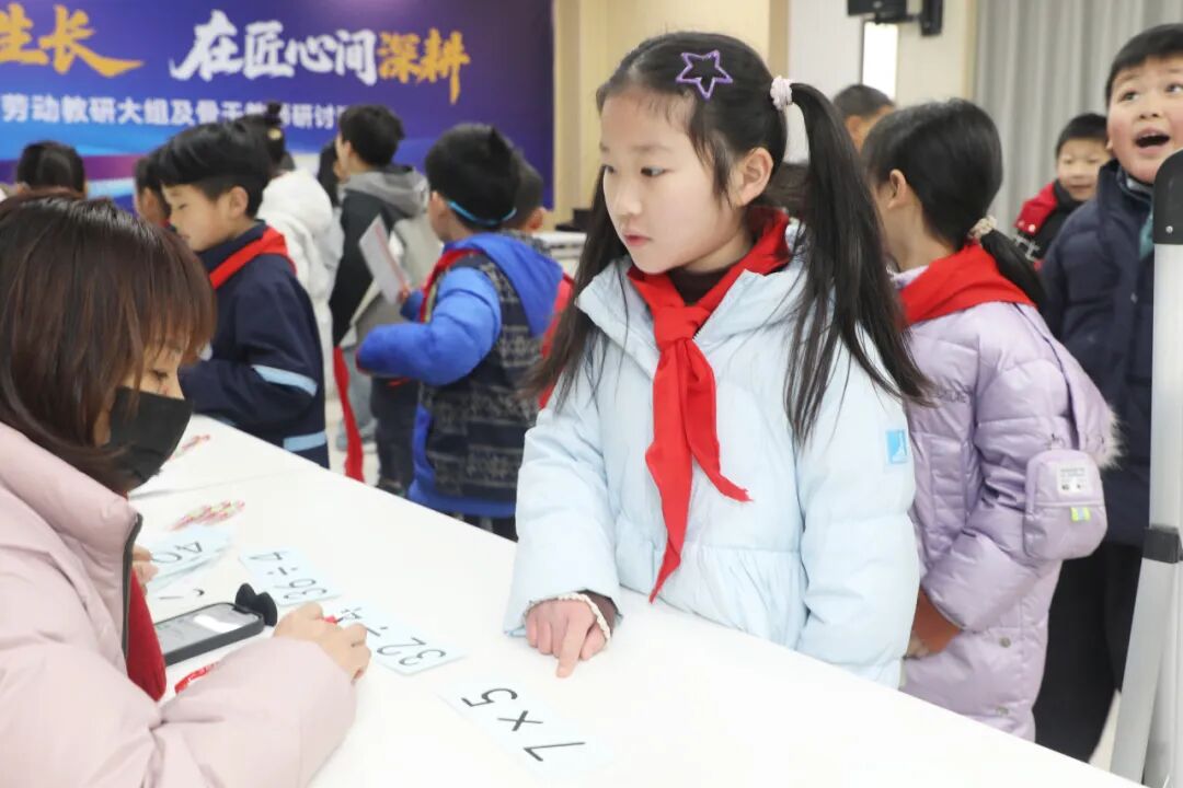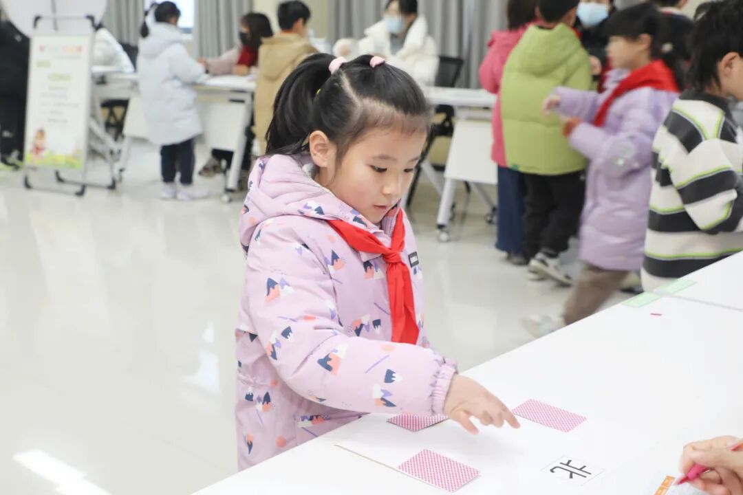 “字词闹新春”摊位前,孩子们从容抽取词卡,清晰响亮地完成朗读,偶有卡壳时,老师们鼓励的眼神与轻声的引导,让他们迅速调整状态、重拾自信。
