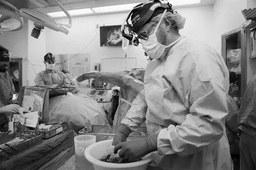 2023年7月,Robert Montgomery在纽约准备将猪肾移植到一名脑死亡男子体内。图源:Shelby Lum
