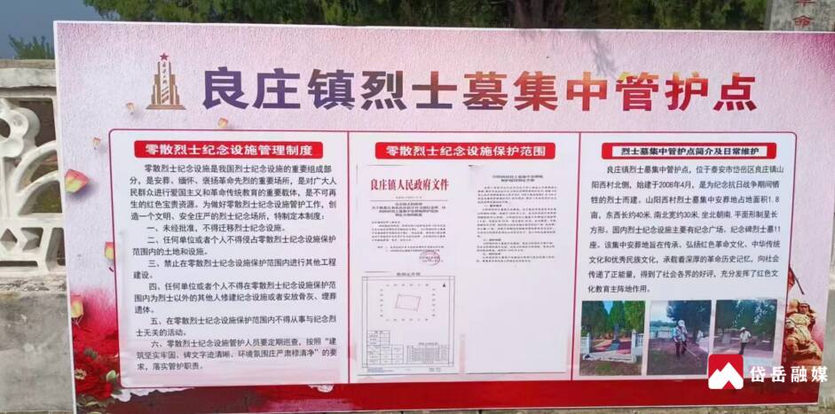 烈士纪念设施管护有力。为岱岳烈士陵园和8处烈士墓集中管护点办理不动产登记,划定保护范围。积极推行“属地+亲属”双重管护机制,50余处零散烈士纪念设施落实管护措施,2025年3月,全区零散烈士纪念设施管护工作在全省会议中作典型交流。