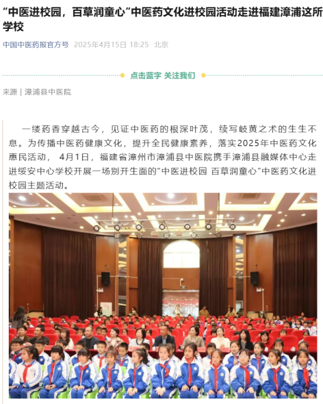 深耕文化传播,提升品牌影响力。2025年,漳浦县中医院持续推动中医药文化传播与品牌建设,多点发力、多措并举,取得显著成效。在文化普及方面,常态化开展“中医药文化进校园、进机关、进社区、进乡村”活动,全年受众超万人次;精心打造中医药文化长廊,通过图文展示、实物陈列等方式,让群众直观感受中医药文化的独特魅力。其中,线下进校园活动拓展至6场,先后走进绥安中心学校、县老年大学等单位,为近千名师生普及中医药基础知识、传授养生保健技能。与县融媒体中心联合打造的《漳浦中医荟》中医药文化直播栏目,已成功播出14期,通过“线上直播+线下互动”的形式,讲解中医养生知识、解答群众健康疑问,有效扩大了中医药文化传播覆盖面。