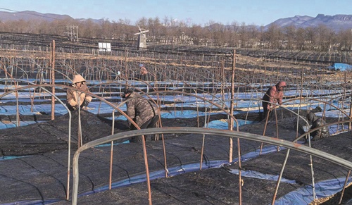 强降温来袭前,参农们铺设保温塑料膜,为野山参安全越冬做准备。(图/王美丽)