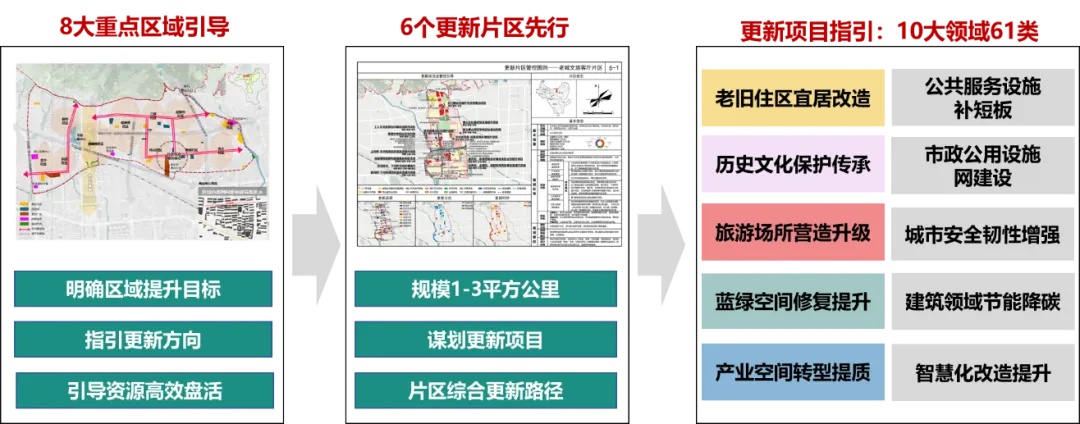三是明确更新实施路径。全覆盖式更新项目策划,谋划出61类、500余个具有可实施性的更新项目。制定适配泰安不同类型更新项目的实施模式指引、项目实施阶段“全生命周期”的制度保障体系,建立案例库,支持政府高效推动项目。
