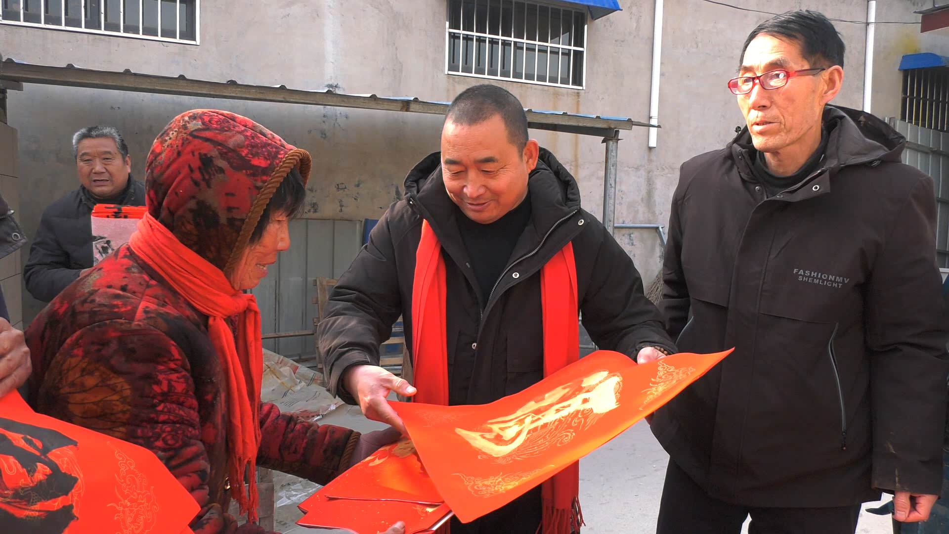 值得一提的是,该村爱心企业家、书画爱好者张海成也积极参与到送祝福活动中,将自己平时精心书写的2000多幅春联、福字挂历全部赠送给村民,并为村民发放糖果等食品。张海成是菜园镇东岗头村村民,常年在外创业,热心公益事业,多次组织参与慰问村里孤寡老人和义写春联活动。