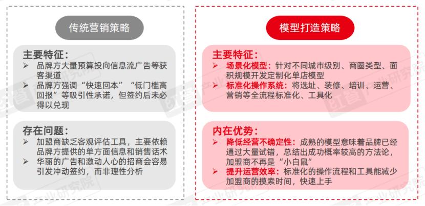 其次,在加盟模式方面,“快招”模式逐步出清,行业向品招模式转型。我国的连锁加盟行业在发展的过程中,出现了一些加盟乱象,其中“快招”品牌的“割韭菜”行为,给整个加盟行业的发展带来了负面影响,使得真正有实力、有诚意的品牌在拓展市场时面临更大的挑战,行业迫切需要完善优质项目的标准和特征。