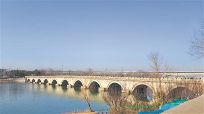 那天出了威严门,便来到了卢沟桥。冬日阳光是一种介于清亮与昏黄之间的颜色,软软地铺在永定河上。我是第一次来卢沟桥,先站在河边远望,数了数是11孔桥。再走上桥去,桥面上高低不平的长条石板闪着岁月的光辉。那一刻不禁让人想象着1937年7月7日的那个夏夜,炮弹是如何撕裂这里的宁静。