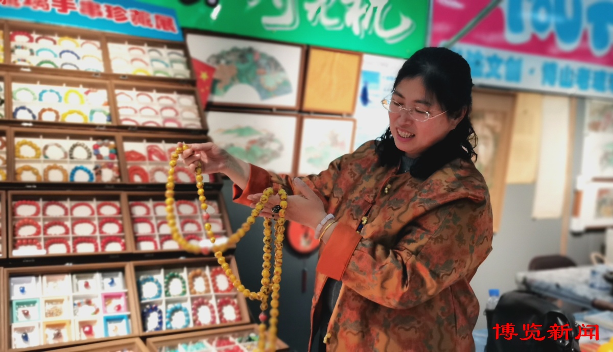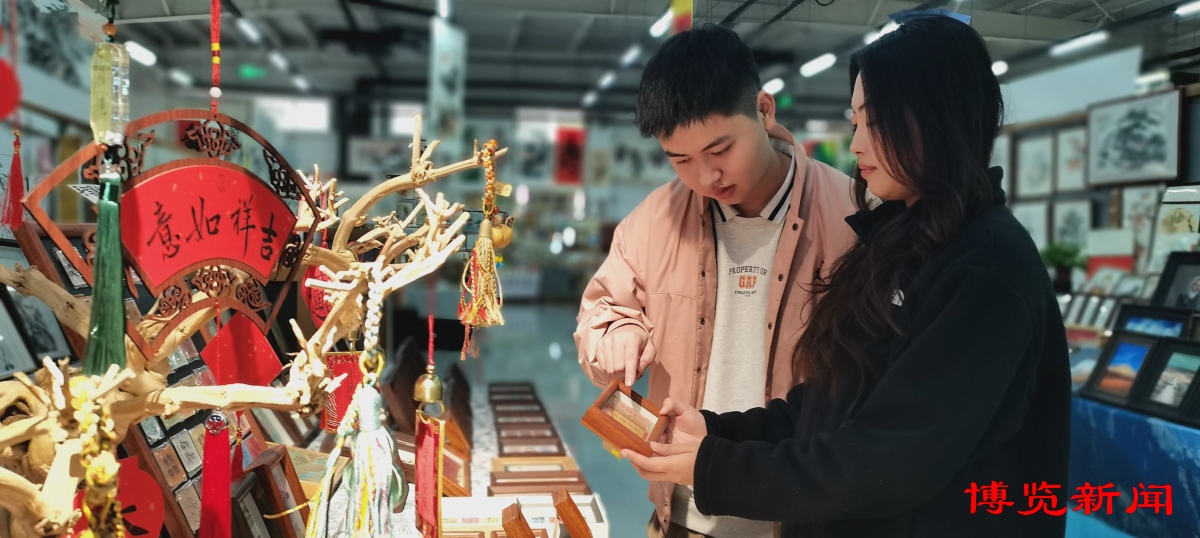 在小店内,不少游客会在作品前驻足良久,寻找与自己心意相通的那一份“眼缘”。写有“平安”字样的挂件,被游客买去当作馈赠亲友的礼物;锦灰堆工艺齐文化摆件,将齐风古韵化作桌面的一道风景。