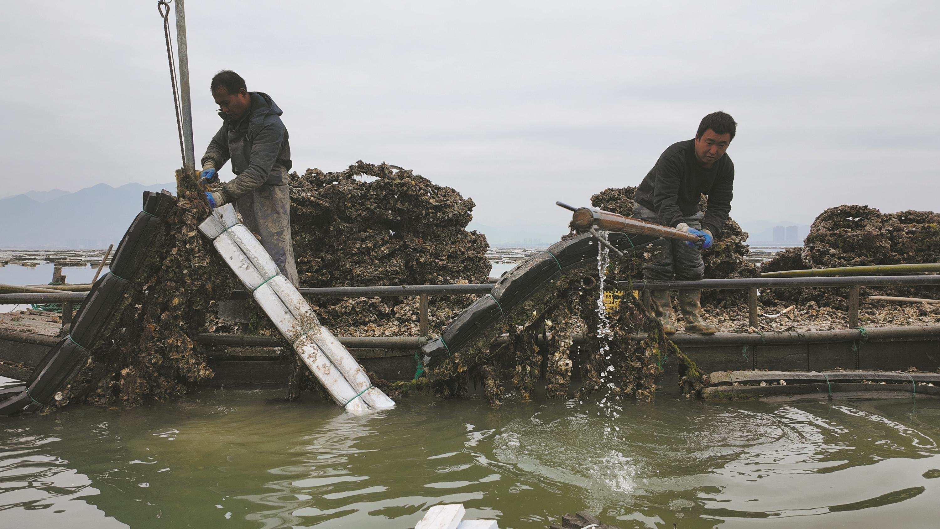 为何今年牡蛎能够喜获丰收?养殖户表示,主要得益于适宜的气候条件:生长期没有台风袭扰,也无持续大雨,气温总体偏高,形成了适宜牡蛎生长的环境。产量提升带动市场价格回落,也让养殖户们更加忙碌了。