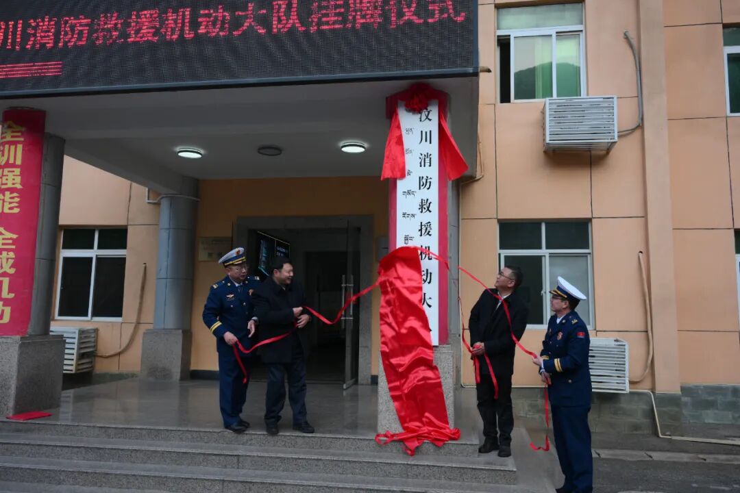 致辞结束后,在全体人员热烈的掌声中,驻地党委政府领导与支队领导共同为“汶川消防救援机动大队”揭牌。红绸缓缓落下,崭新的牌匾熠熠生辉,不仅见证了大队发展的重要时刻,更凝聚着党和人民的殷切期望,同时也吹响了大队勇担新使命、奋进新征程的号角。