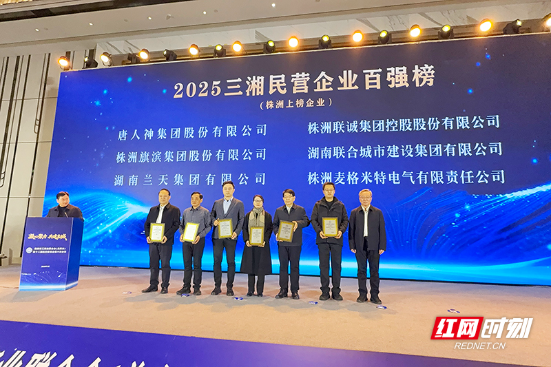 大会对部分2025年度作出突出贡献、取得杰出荣誉的企业和个人进行了表彰和授牌。株洲联诚集团、湖南三神集团等6家大力支持“湘超”赛事、助力城市形象提升的民营企业获颁“湘超”同心奖。唐人神集团、株洲旗滨集团等6家入围“2025三湘民营企业百强榜”的企业接受授牌。唐人神集团总裁陶业与株洲九方装备股份有限公司高智敏,因在构建和谐劳动关系方面的杰出表现,分别被授予“全国关爱员工优秀民营企业家”和“全国热爱企业优秀员工”荣誉称号。