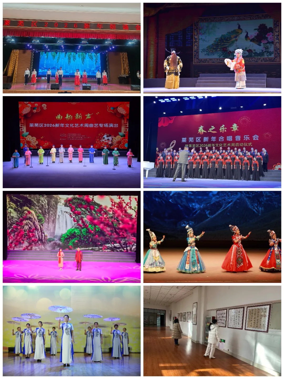 岁末年初,由济南市莱芜区文化馆精心策划的“艺彩纷呈 欢庆新岁” 新年文化艺术周系列活动圆满落幕。本次活动以六大艺术类别为核心,涵盖8场精品演出与1场书法精品专题展览,分别在莱芜梆子演艺剧场、文化馆小剧场、雪野中心中学等多地精彩呈现,为市民朋友打造了一场兼具传统底蕴与时代活力的沉浸式文化盛宴,营造了浓厚的节日氛围。