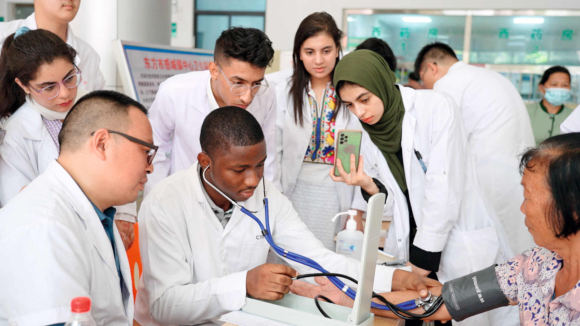 海南医科大学“医暖东方”三下乡团队在 “国际学生医学人文教育实践基地”参加义诊活动(供图 | 海南医科大学国际教育学院)