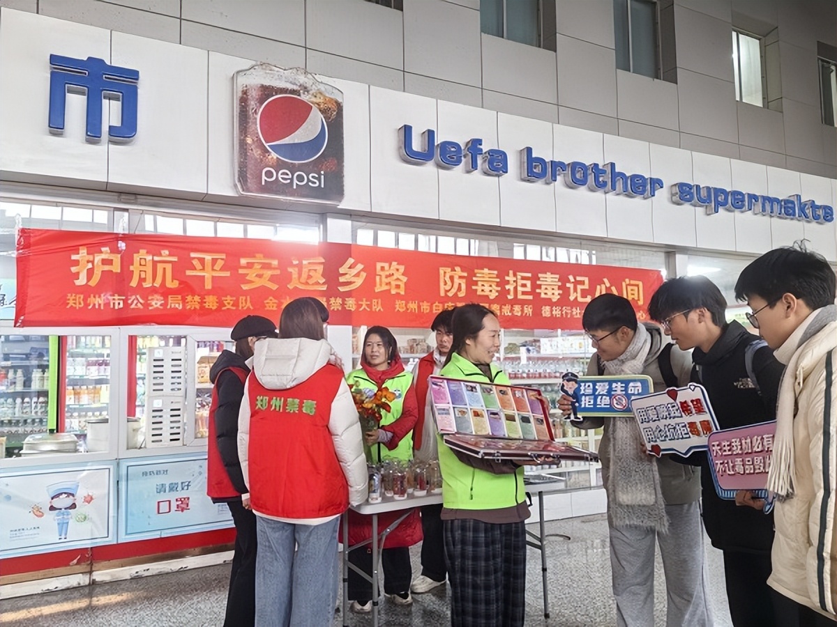 随着春运返乡客流高峰的到来,为守护人民群众平安团圆,筑牢交通运输枢纽的禁毒防线,1月28日,郑州市公安局禁毒支队联合金水分局禁毒大队、国基路派出所、德裕行禁毒社工及禁毒志愿者,在人员密集、流动性大的郑州客运北站候车大厅开展了一场以“平安春运,无毒出行”为主题的禁毒宣传教育活动。此次活动旨在抓住春运关键节点,提升广大旅客,特别是返乡务工人员及青少年群体的识毒、防毒、拒毒意识。