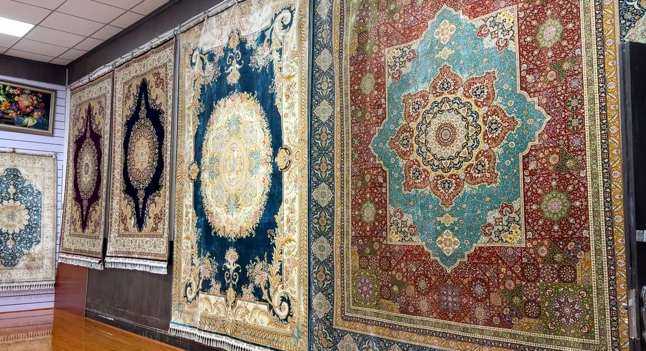 作为2008年列入第二批国家级非物质文化遗产名录的技艺,和田手工地毯承载着文明积淀。从古老的传统样式,到如今融入现代设计的新品,这项技艺在传承中不断生长。纳克西湾公司将纯毛、纯丝、丝毛合织三类材质与20多个系列、100余种花色相结合,特邀两名自治区级工艺美术大师坐镇,把古画、文物等文化元素融入设计,让《红楼梦》等经典题材在地毯上焕发新生。