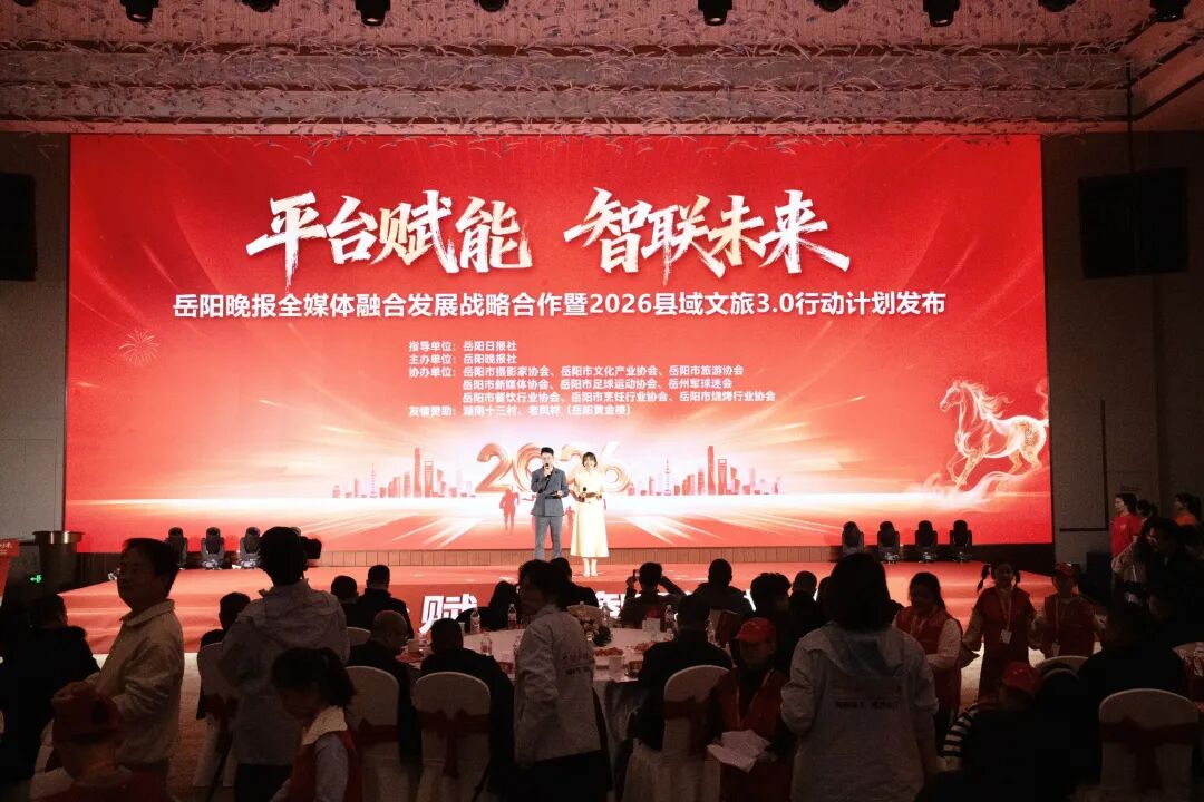 发布会聚焦媒体深度融合与文旅产业赋能,举行了集中签约仪式,正式推出“智联山水·赋能生长”2026县域文旅3.0行动计划,同步启动“岳阳文旅创客联盟”,并展示了岳阳晚报社2025年度十大经典传播案例、《寻味岳阳》融媒体综合服务平台发展历程,彰显其在融合发展中的探索与成效。岳阳日报社党组全体成员,市摄影家协会、市文化产业协会等多个协会负责人,以及合作商家代表等齐聚一堂,共同见证。