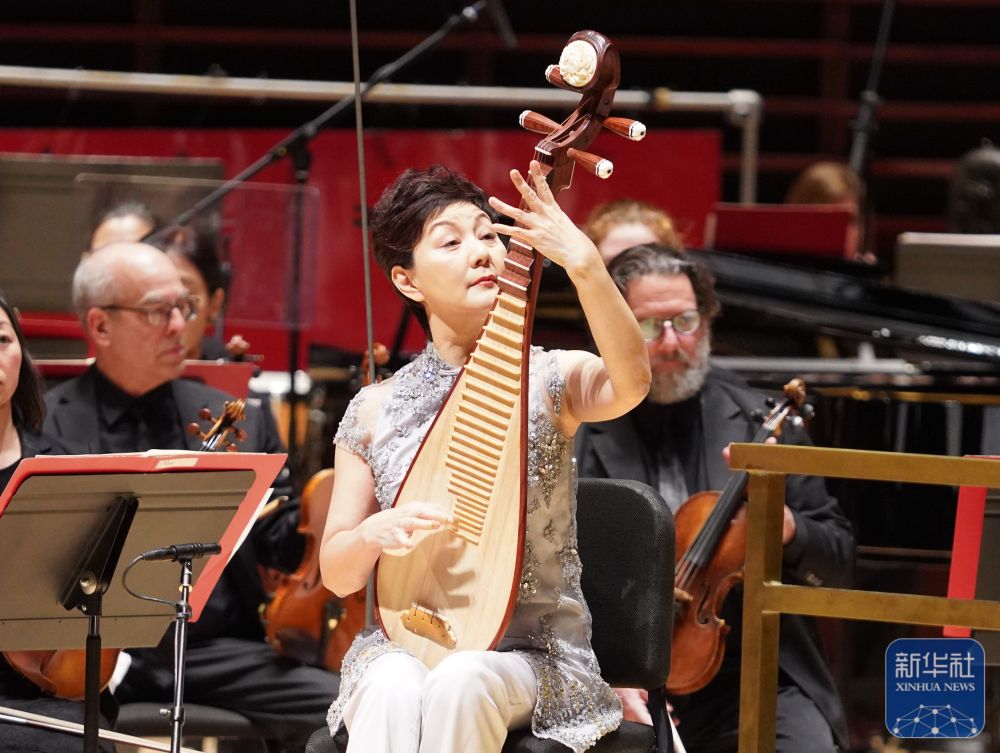 ↑1月28日,在美国费城,中国民乐演奏家于红梅在2026“欢乐春节”音乐会上演出。
