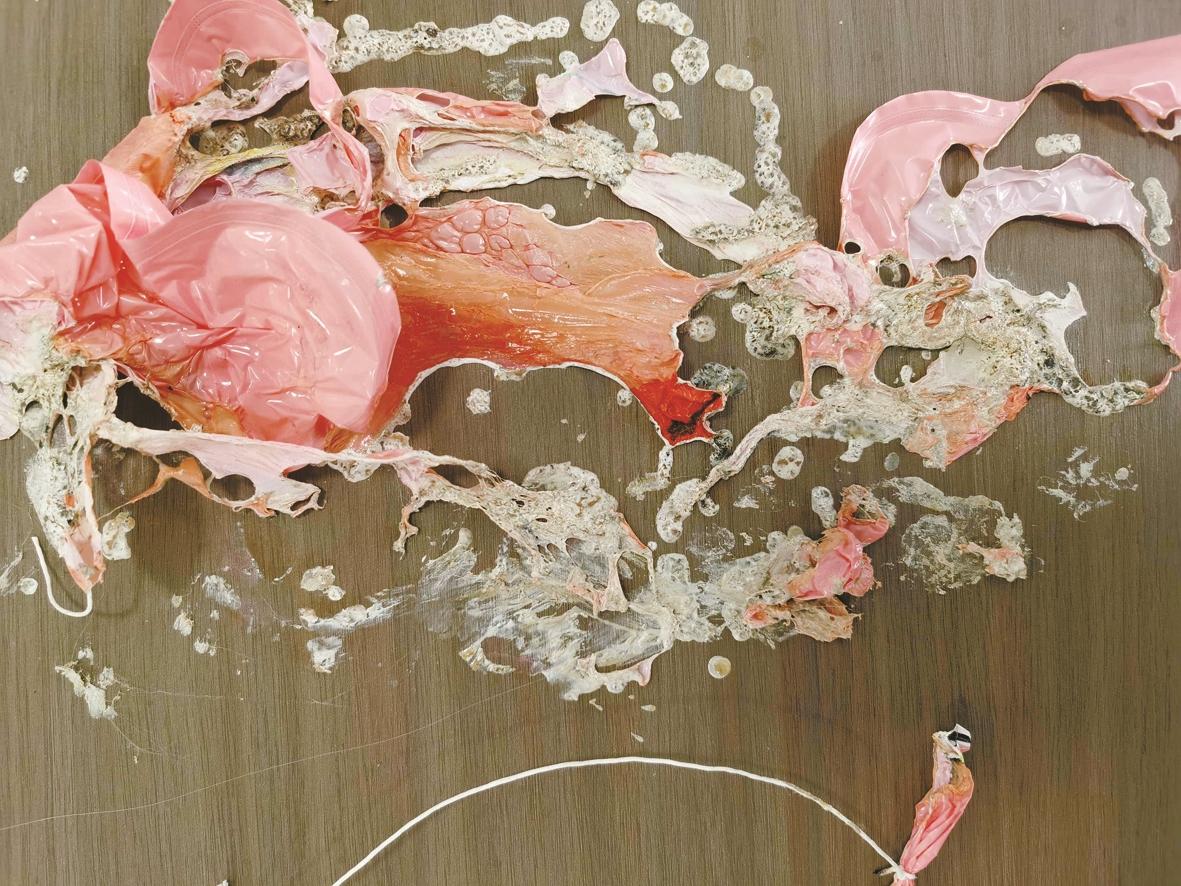 现场可见,接触火焰的瞬间,“爱心”迅速被引燃,火焰高度可达3至5厘米,且持续燃烧。燃烧结束后,消防员用长柄打火机再次靠近残留物,发现部分未完全燃烧的残留物因含有未挥发溶剂,遇火仍复燃,残留风险不容忽视。
