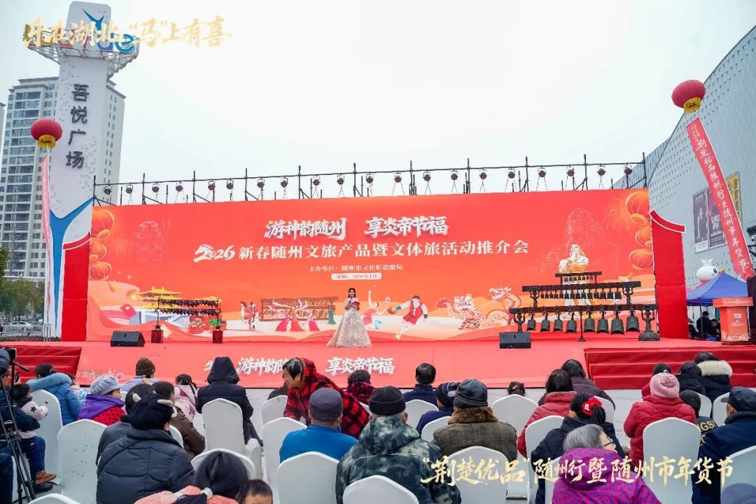 随州日报讯(全媒记者陈云、通讯员张亚捷)1月28日,2026年随州文体旅新春推介活动在随城吾悦广场举行。从现场获悉,今年春节前后,我市精心策划“游神韵随州 享炎帝节福”2026年新春祈福季活动,推出五大主题板块、持续至元宵节的百余项文体旅特色活动,陪市民游客欢乐过节。