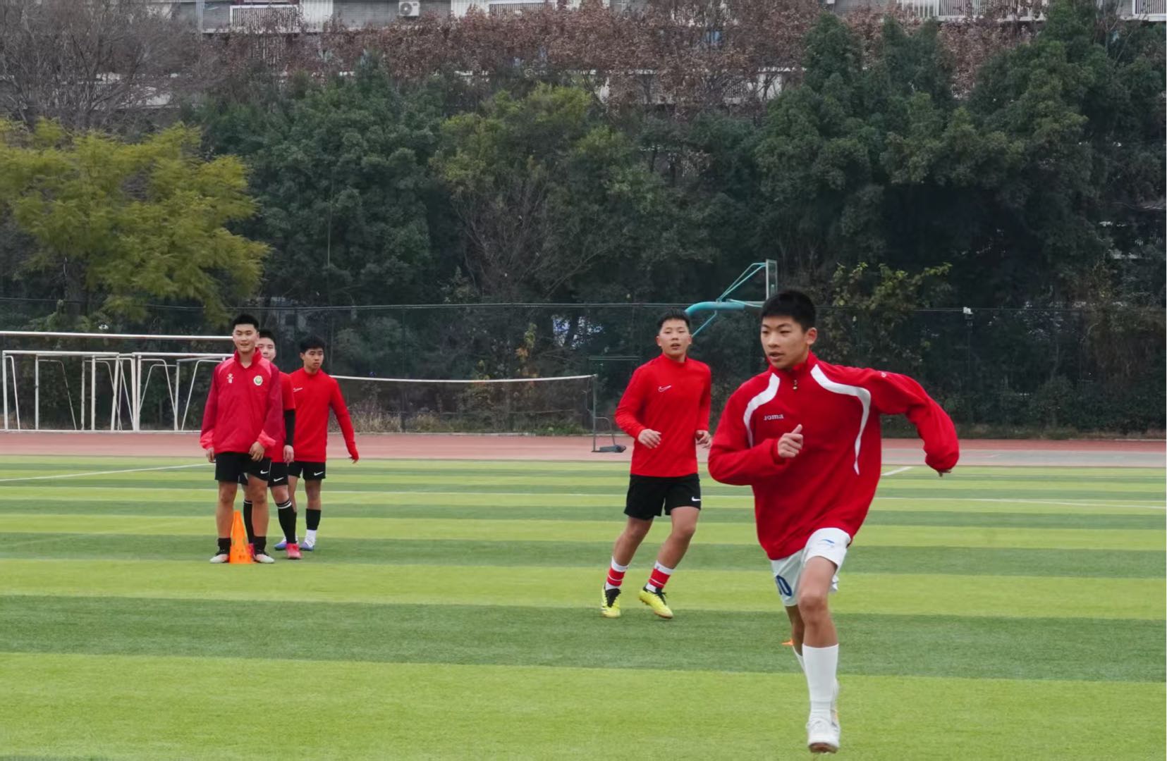 鲜红的球衣映衬在绿茵草坪上,奔跑、对抗、传接之间,少年的动作敏捷而自信。寒风中,他们将集训中的收获带回校园训练场,继续磨炼与积累。