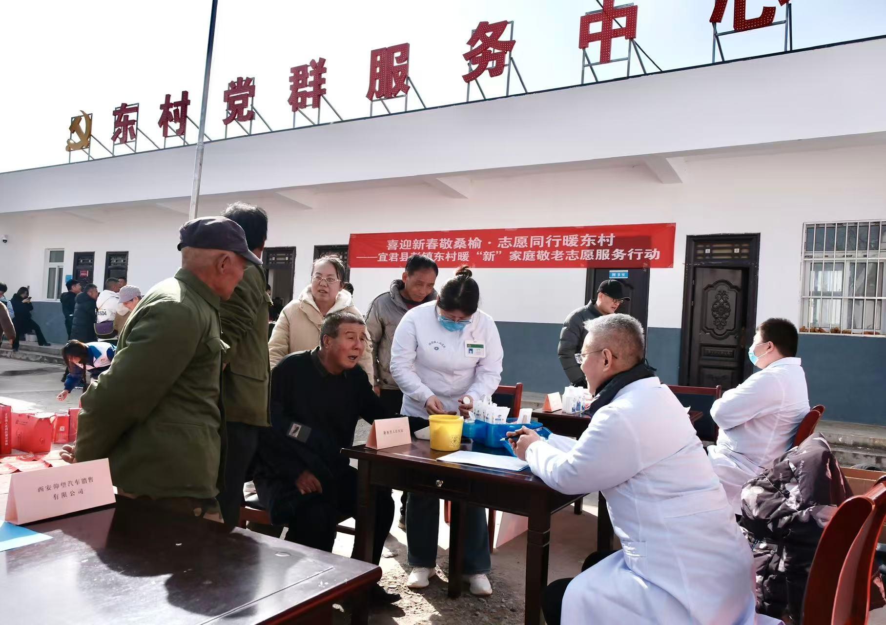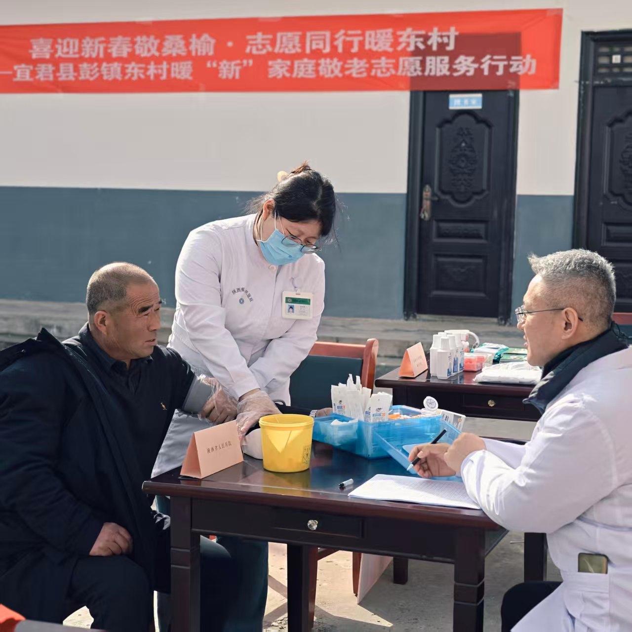 志愿服务项目三:健康义诊,守护乡村健康——医护志愿者为村民测量血压、血糖,细致讲解冬季养生与慢病防护知识,并提供专业口腔健康咨询。