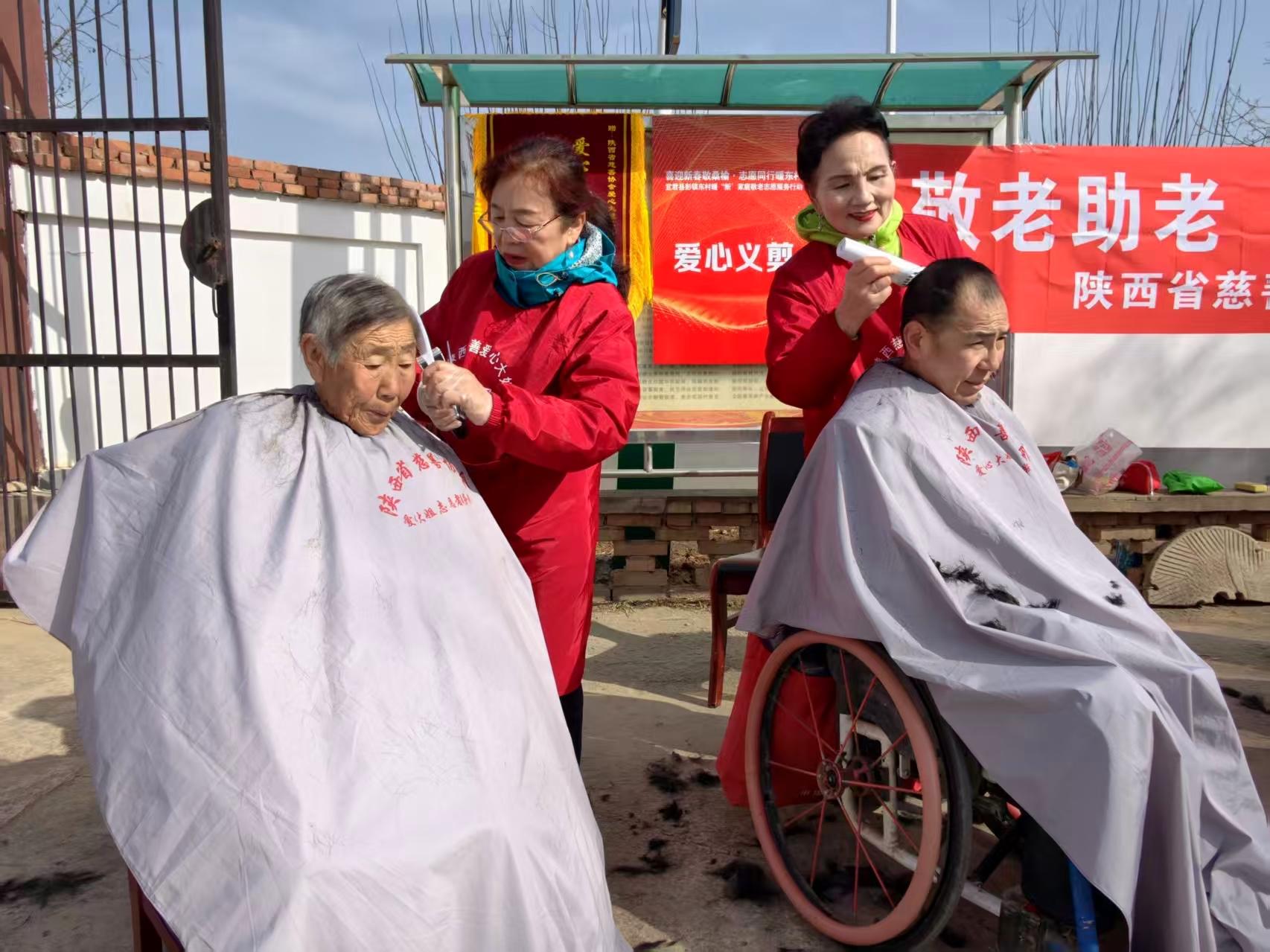 志愿服务项目二:爱心义剪,清爽迎新年——省慈善协会爱心大姐志愿者团队的专业理发师耐心为老人、村民免费理发,解决日常“理发难”问题。