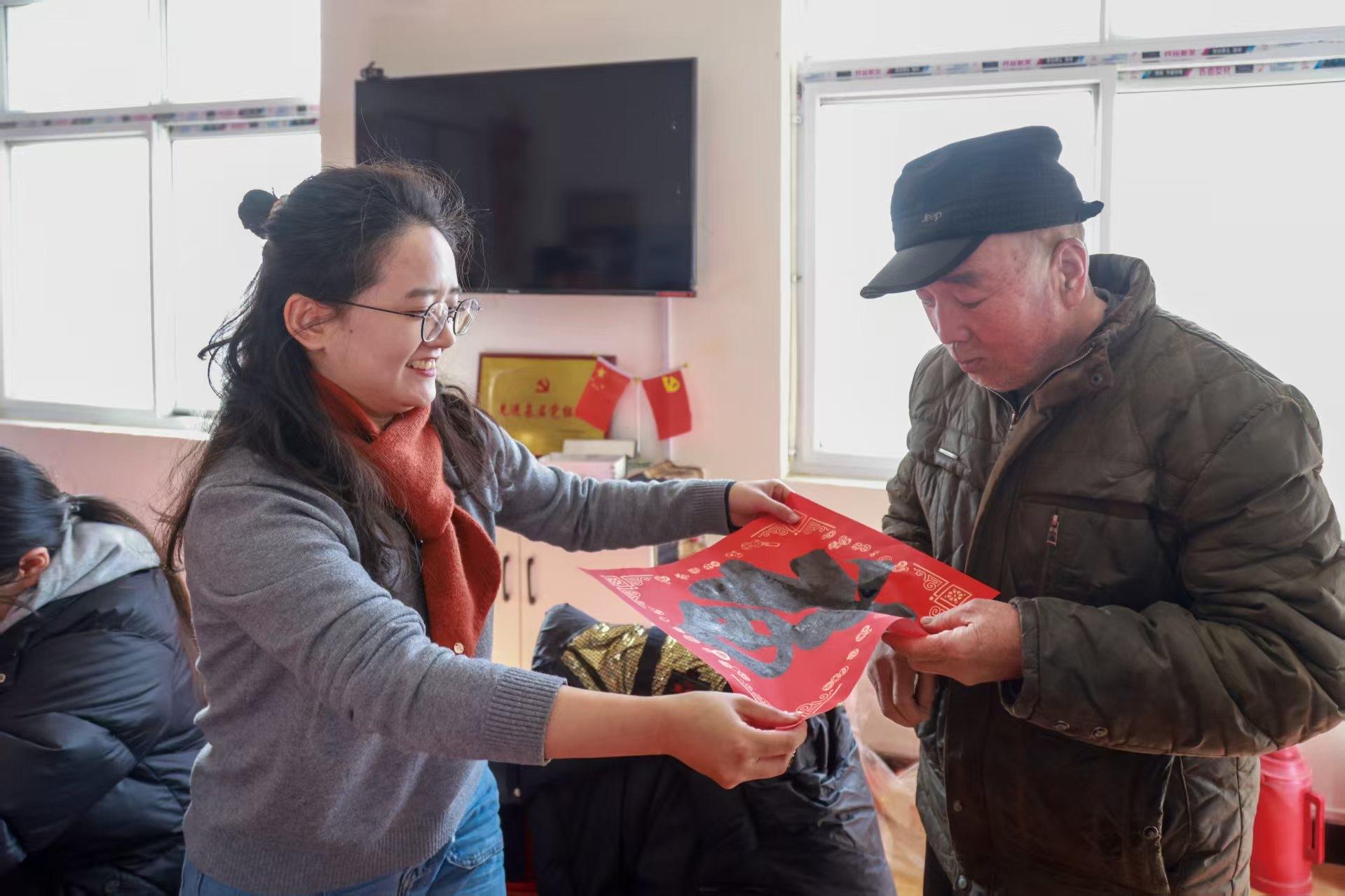东村78岁的王大爷手持春联和慰问品,笑容满面地说“感谢志愿者特意来村里,写春联、理发、看病、修家电……样样都办到我们心坎里,心里特别暖和!”村民李阿姨也感慨道,“不用出门就能享受这么多服务,太实在了,为志愿者点赞!”