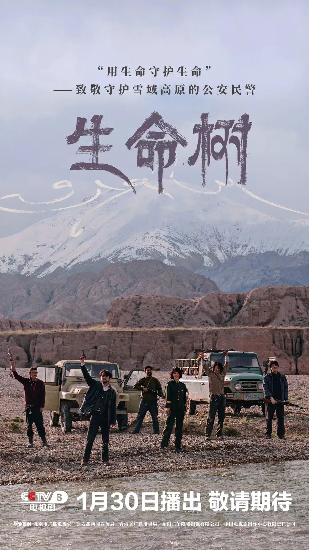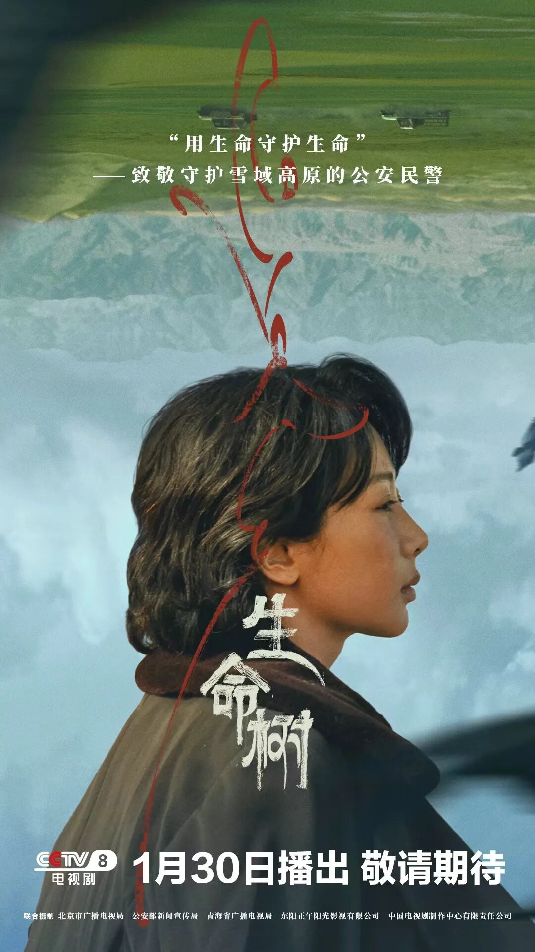 电视剧《生命树》将于1月30日在中央广播电视总台央视八套黄金时段19:30开播。该剧取材自真实事件,以青海可可西里反盗猎斗争为背景,讲述青海省玛治县女民警白菊在信念坚定的副县长多杰带领下,与巡山队员们不惧艰险打击盗猎盗采,用血肉之躯在绝境中保护藏羚羊、守护绿水青山、捍卫生命禁区的故事,艺术刻画了白菊等公安民警坚守“无人区不是无法区”的法治理念,锲而不舍追查案件真相的使命担当,深情礼赞巡山队“用生命守护高原生命”的牺牲精神。