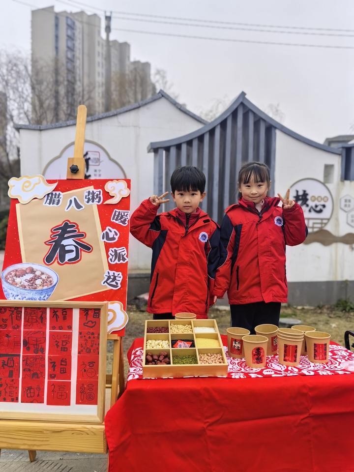 活动首日正值腊八节,孩子们通过绘本、动画了解节日由来,亲手清洗五谷、剥蒜腌制,共同熬制腊八粥。下午,大家将热腾腾的粥与真诚的祝福送给环卫工人与社区工作者,在劳动与分享中体会感恩与温暖。