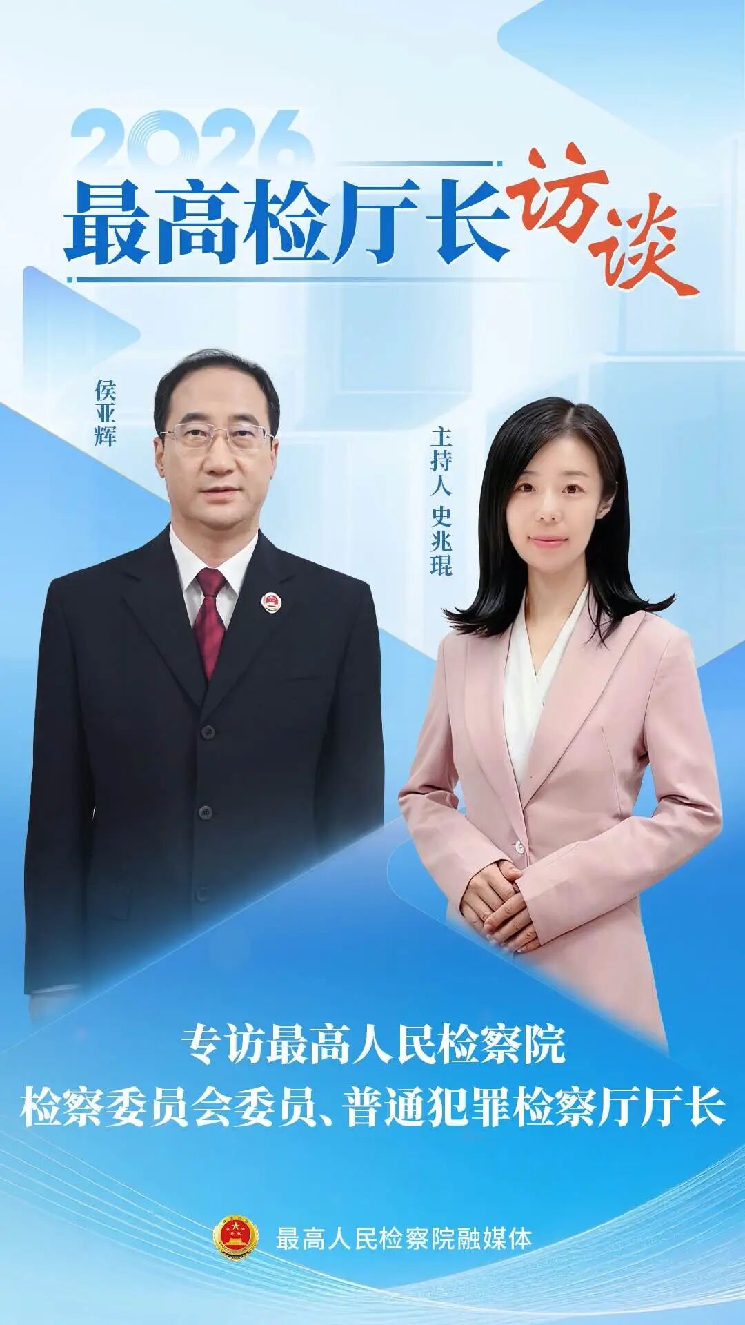 1月31日,最高人民检察院检委会委员、普通犯罪检察厅厅长侯亚辉围绕“学思践悟党的二十届四中全会精神 持续推进习近平法治思想的检察实践”主题,在做客最高检厅长访谈时,对普通犯罪检察部门2025年的工作进行回顾总结,并对2026年如何高质效履职作出部署。