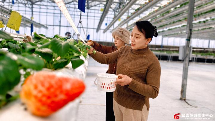 “冬天能见到这么多在空中生长的新鲜果蔬,太神奇了!”昌吉市游客王女士一边采摘一边拍照。她坦言春节前带着孩子前来采摘草莓,既能亲近自然又能收获鲜品,体验感十足。