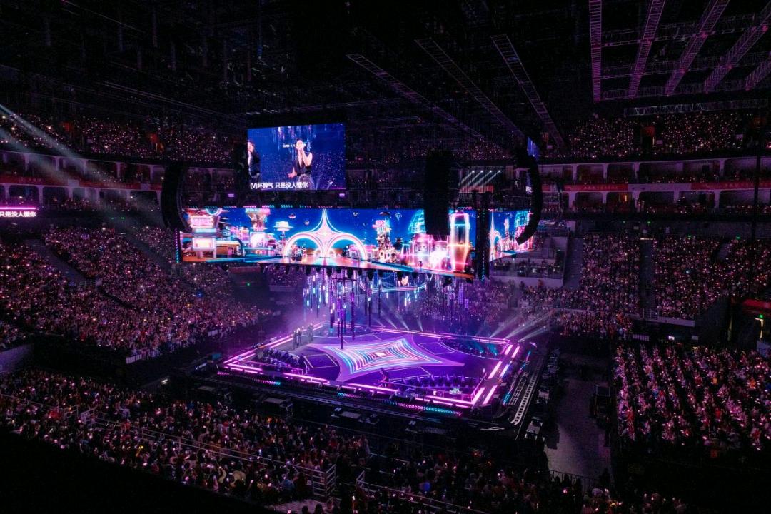 凤凰山综合体育馆技术负责人告诉记者,“无柱四面台对硬件提出两大核心考验:足够的吊点密度和强大的屋面荷载。我们确认场馆结构符合标准,并制定了科学的吊点分布方案。”在实际操作中,技术团队通过优化电缆布线等方式,在保障设备运行的同时,最大限度减少了安全隐患与视觉干扰。演出主办方上海乌托邦文化传媒有限公司巡演总统筹武弋则表示:“场馆良好的条件与技术支持,给我们的舞美设计提供了更多创意空间。”