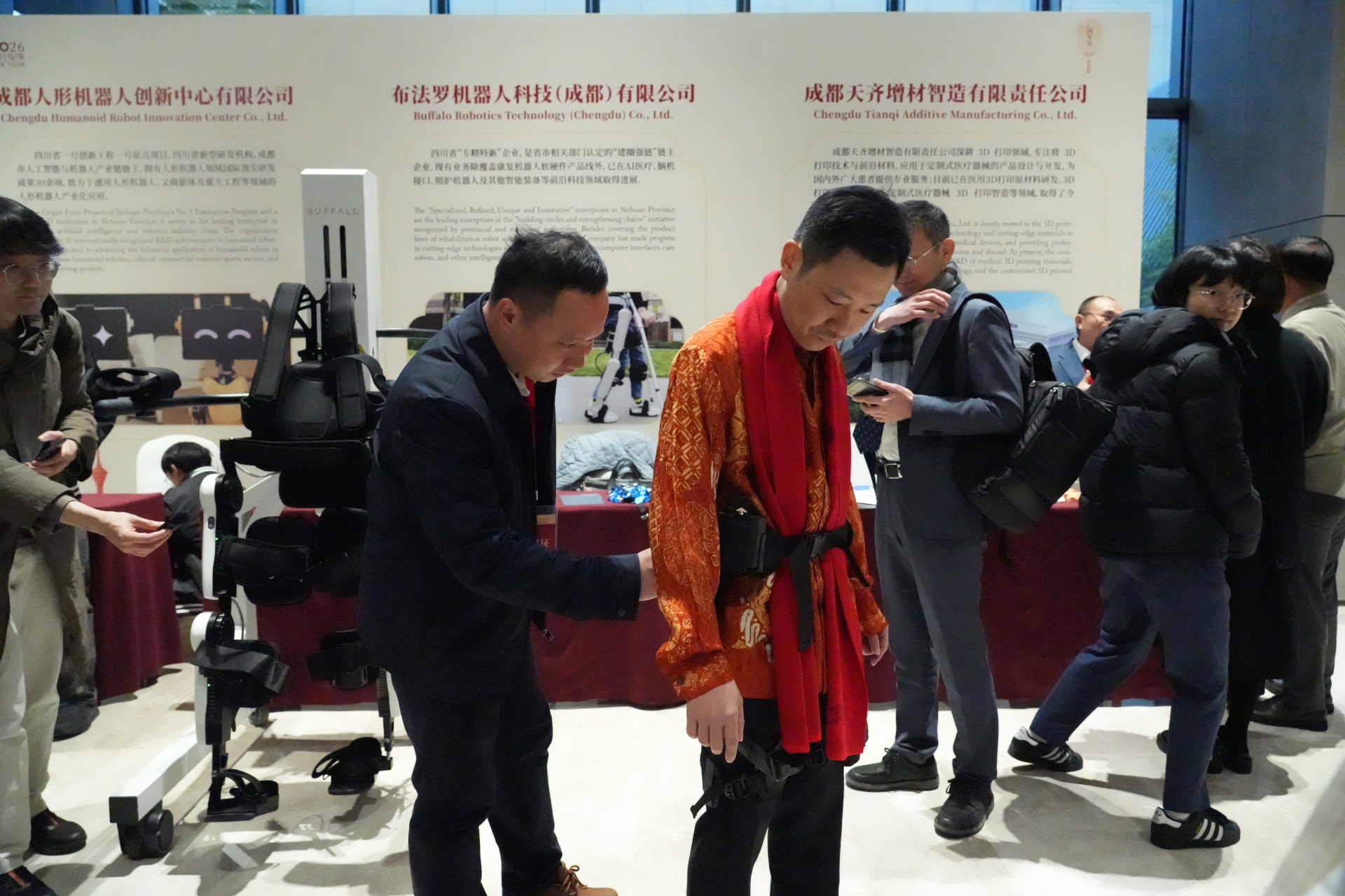 “太棒了!这是人工智能技术的一项显著突破……”在体验完“成都造”外骨骼机器人后,新加坡驻成都总领事陈知恩感叹道。“成都在人工智能领域的发展速度令人瞩目,这些技术不仅能提升生活便捷度,更能为产业升级和国际合作注入强大动力。”他表示,新加坡近年来在推动企业的数字化转型方面开展了大量工作,尤其是强化人工智能(AI)在各个领域的布局,希望未来能与成都加强在相关领域的交流与合作,探索AI技术在更多场景的应用。