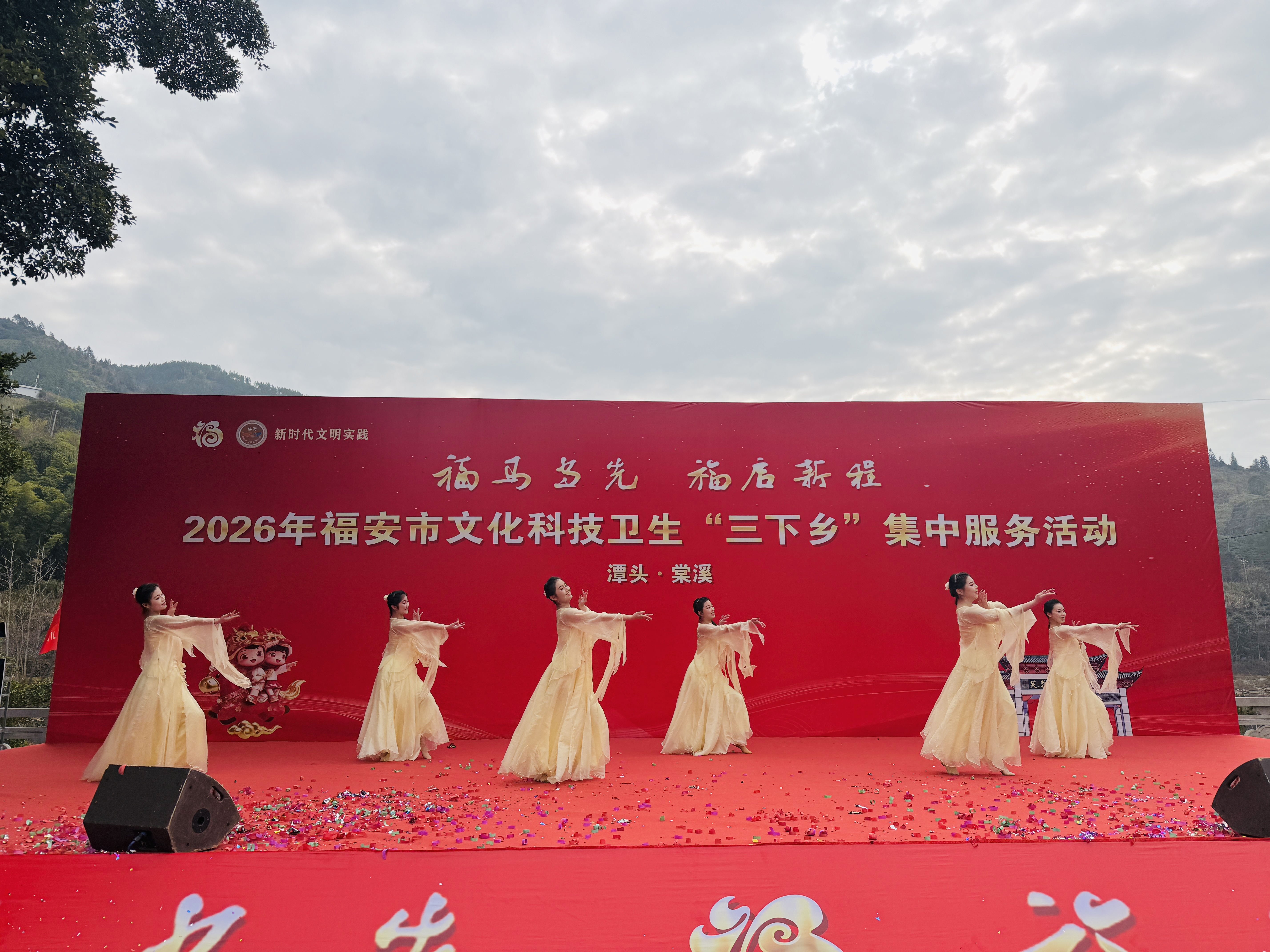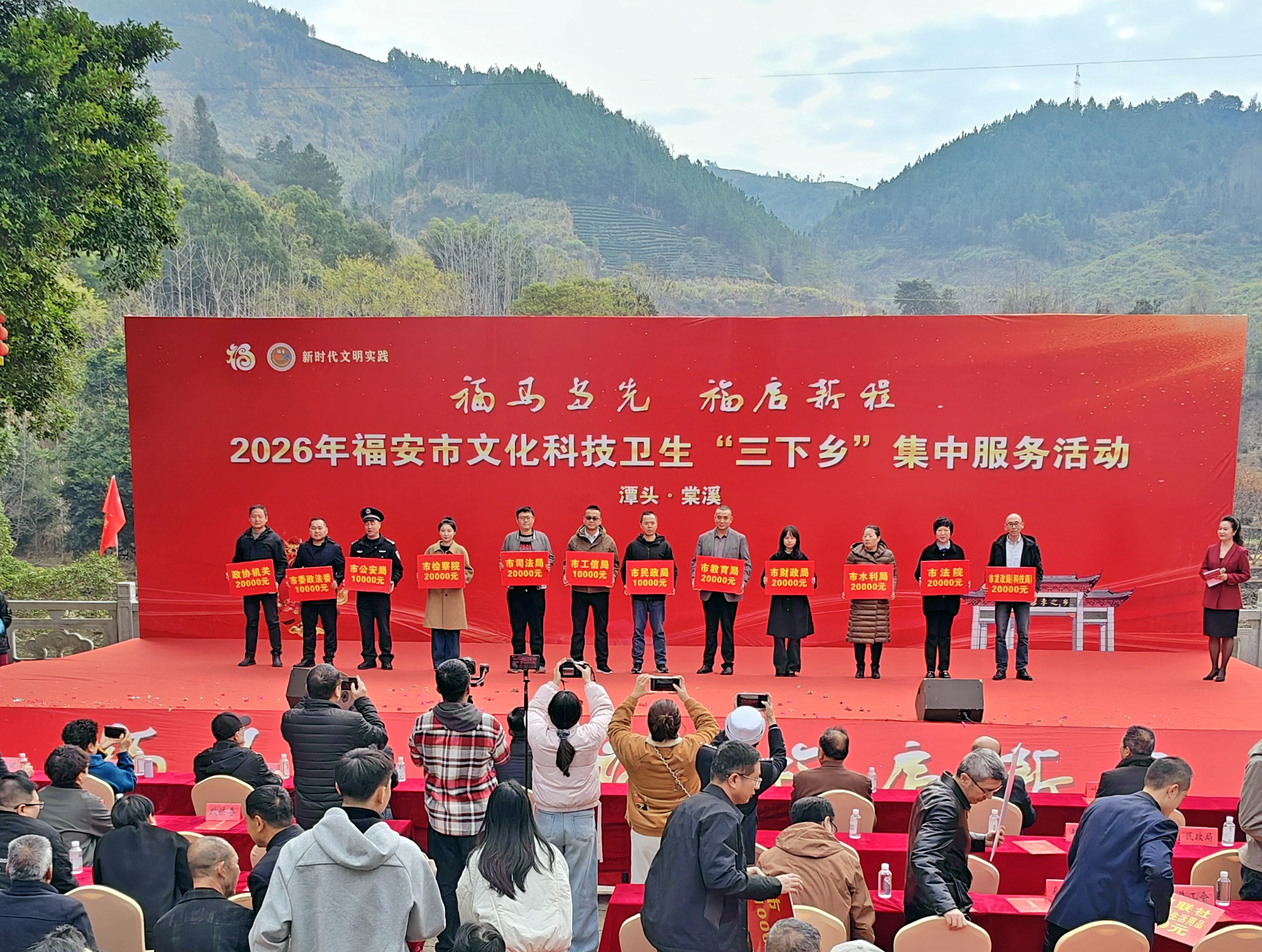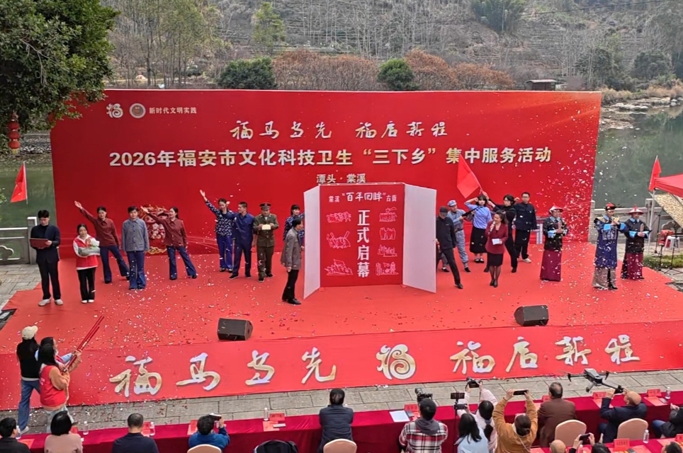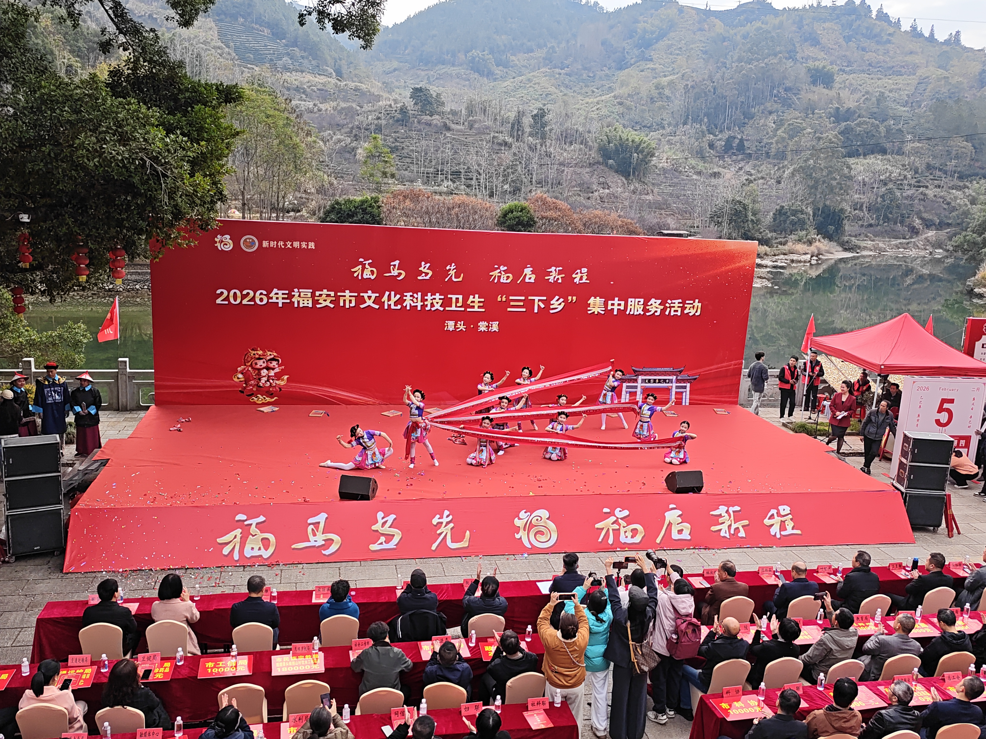 2月5日上午,2026年福安市文化科技卫生“三下乡”集中服务活动在潭头镇棠溪村武陵广场隆重举行。本次活动由市委宣传部牵头,组织38家单位共同组成服务团队,通过文艺演出、互动体验、政策宣讲、惠民服务等形式,将文化、科技、卫生等优质资源送至乡村一线,切实送到百姓身边,为新春佳节增添了浓浓的暖意与活力。市委常委、宣传部部长周华健出席活动。