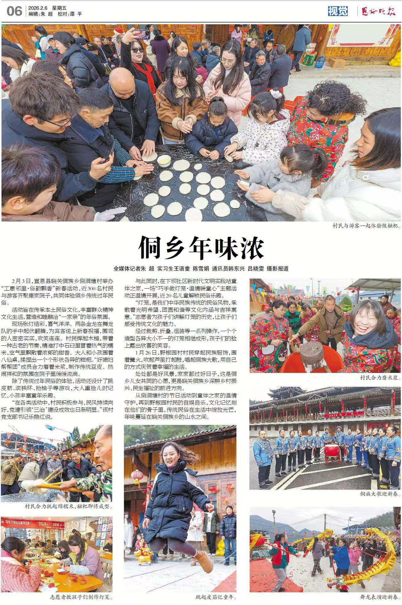 2月3日,宣恩县晓关侗族乡倒洞塘村举办“工惠邻里·俗韵飘香”新春活动,近300名村民与游客齐聚康家院子,共同体验侗乡传统过年民俗。