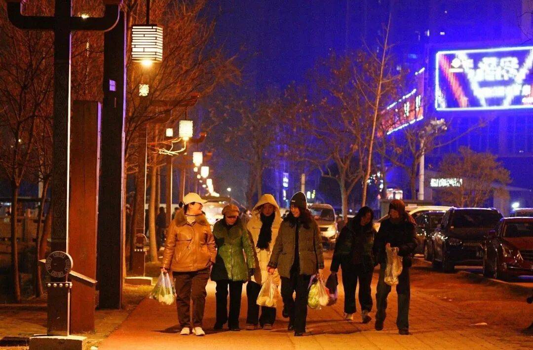 2月2日晚上,湖南省安乡县深柳镇居民购物后,在宽敞明亮的安乡大道步行回家。