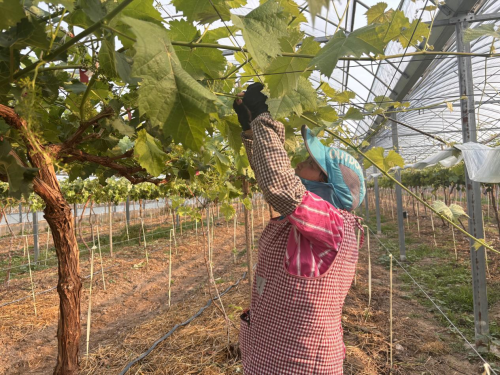 针对产业症结,团队锚定 “技术提品质、加工促增值、品牌拓销路” 的思路,在萧县农业农村局支持下开展全方位创新。种植端引入绿色低污染杀菌技术,将葡萄灰霉病侵染率降低 15 个百分点,同时通过遥感监测技术提供精准水肥建议,有效缓解了传统种植产量不稳的问题,呼应了 “绿色农业发展”“农业提质增效” 的政策要求。酿造环节摒弃易产生苦味的传统工艺,采用低温锁香发酵工艺,搭配天然酵母发酵技术,在减少化学添加剂的同时,让葡萄酒实现 “果香浓郁、口感柔和” 的品质突破,精选糖酸比适宜的巨峰与夏黑葡萄为原料,经 11 道精细工序酿成 “桃红” 葡萄酒,践行了 “农产品深加工提升行动” 的政策部署。