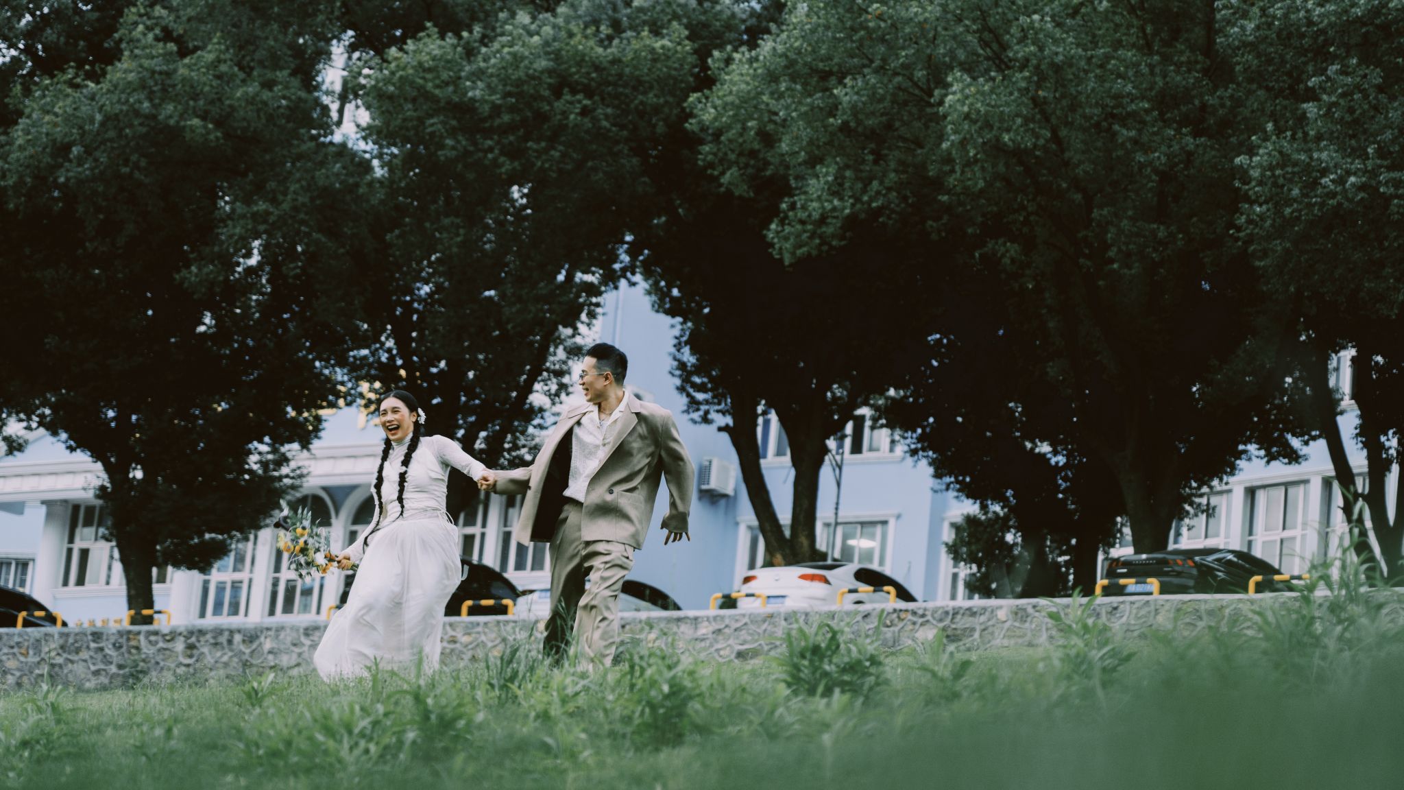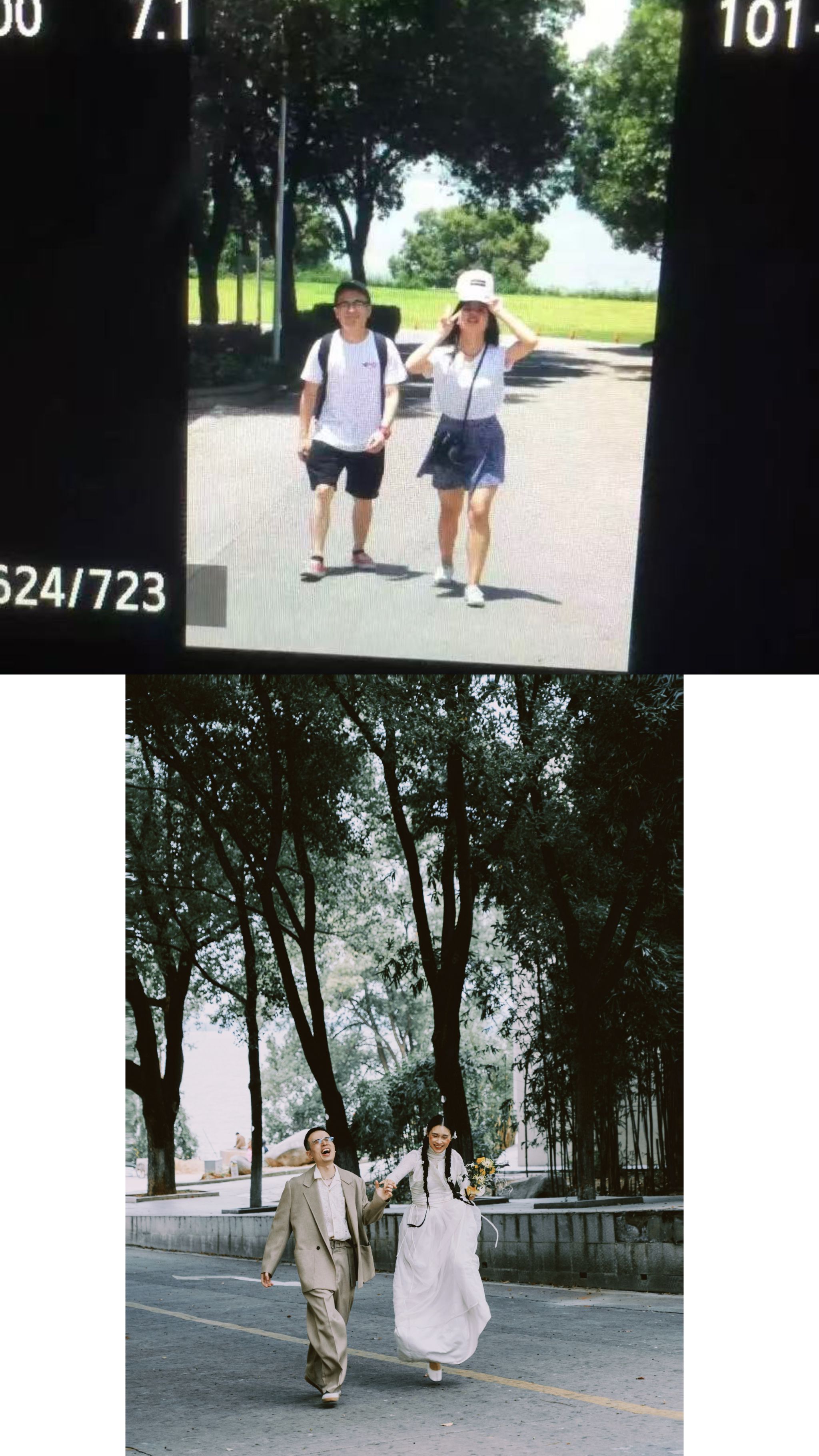 毕业后,两人各自成长、彼此同行。黄彤萼成为一名建筑设计师,夏斯琪则坚守热爱,成为一名舞蹈老师。“他工作虽然忙碌,但从未放下对舞蹈的热爱。我们常在闲暇时一起创作舞蹈作品,他也常常给我带来新的灵感。”新娘夏斯琪笑着分享道。也正因此,他们特意回到母校,在当年曾合影的相同场景拍摄婚纱照,以这样一种充满仪式感的方式,兑现年少时的约定。