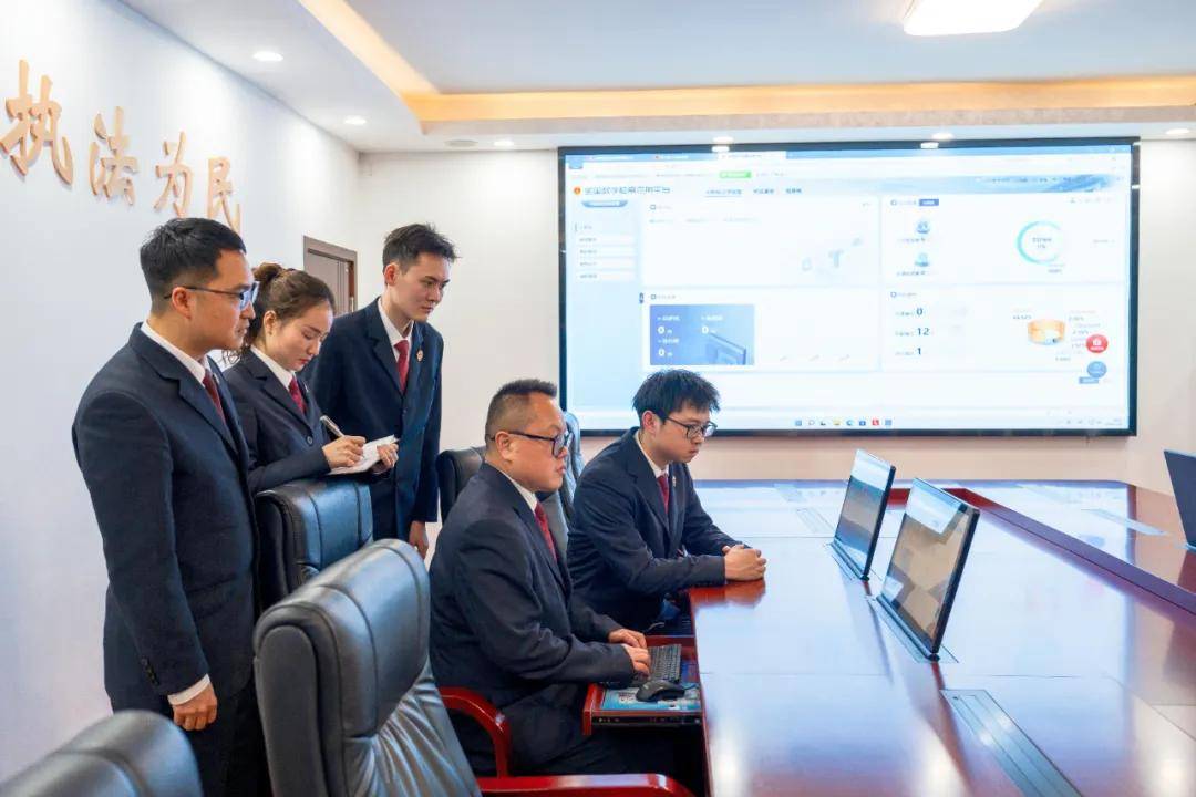 今年1月,达州市检察机关大数据应用推广专班成员们查看燃气安全大数据法律监督模型运用情况。