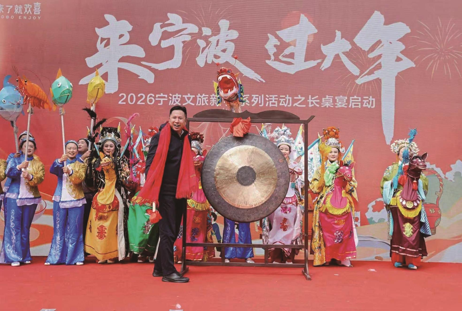新春年味何处浓?长桌宴里寻!2月10日,“来宁波·过大年”2026宁波文旅新春系列活动之长桌宴在海曙南塘老街正式开席,宁波市文化广电旅游局党组书记、局长应建勇为活动开锣。