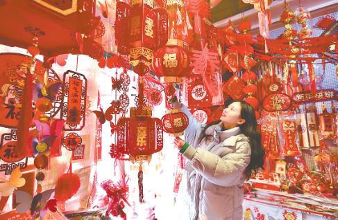 山阳商城内,市民在选购春节饰品。